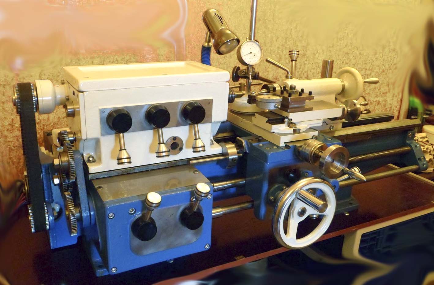 Коробка подач забезпечує 3 швидкості подачі супорта і може нарізати 3 метричні різьблення без перестановки шестерень у гітарі.
