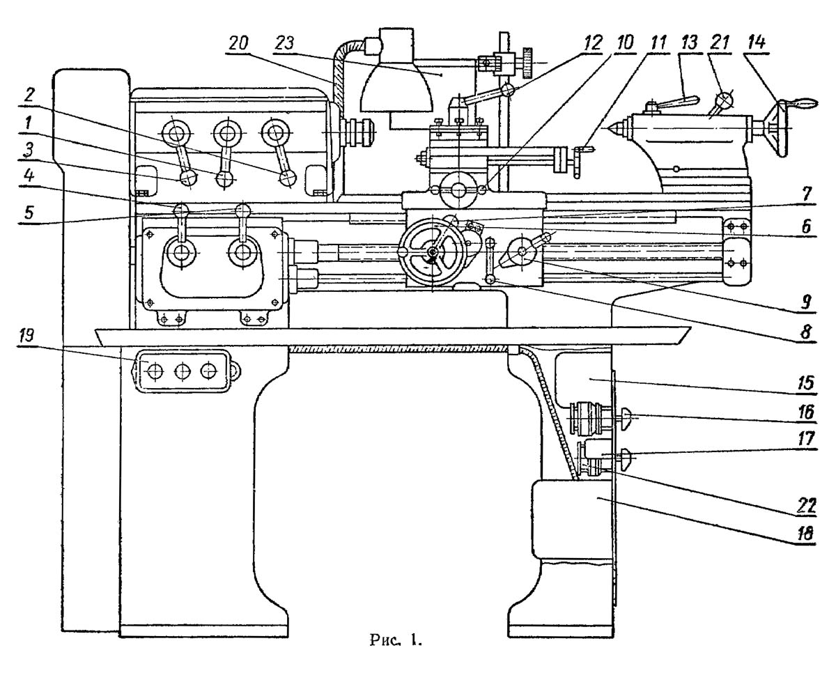 Розташування органів керування токарним верстатом тв-4