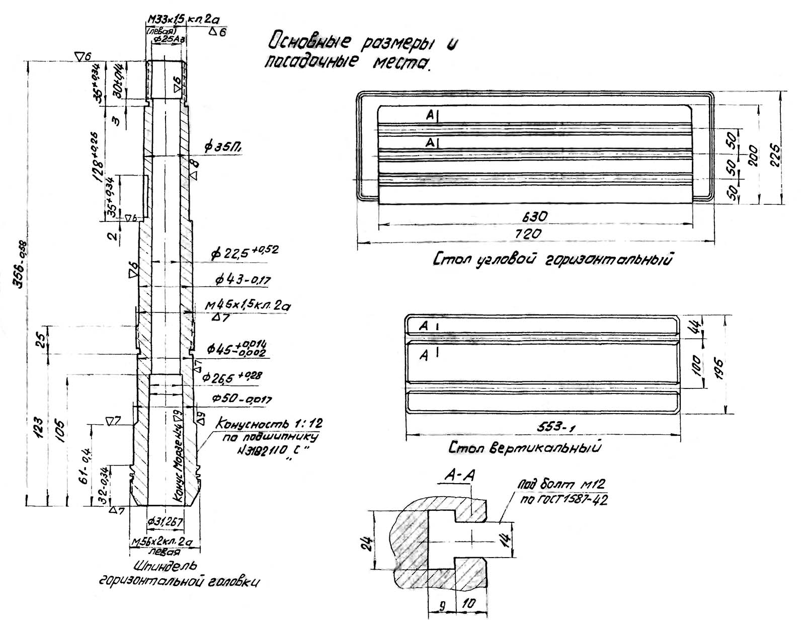 Присоединительные базы верстата УФ-600с (СФ67). Горизонтальный шпиндель і шпиндель вертикальной головки УФ-600с