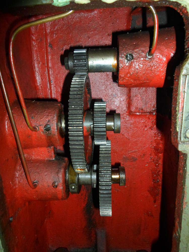 Вертикальный шпиндель получает вращение от горизонтального шпинделя через промежуточный валик з шестерней і двух конических шестерен.