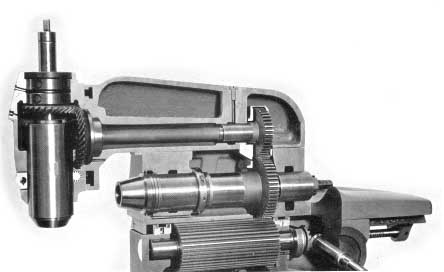 Шпиндель получает свое вращение от коробки швидкостей. Возможны 6 швидкостей обертання шпинделя – от 125 до 1220 оборотів в минуту.