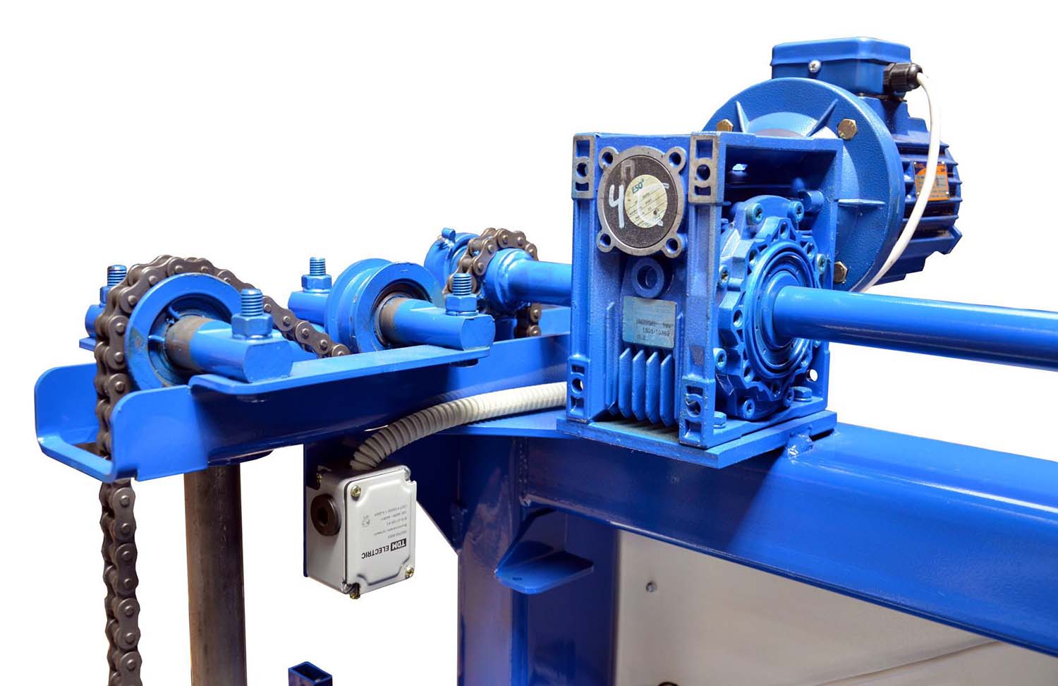 Механізм подъема-опускания пильной рамки цепной, через редуктор і електропривод.