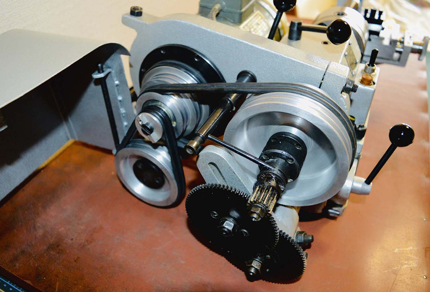 Частота обертання шпинделя регулюється за допомогою східчасто-шківної ремінної передачі.