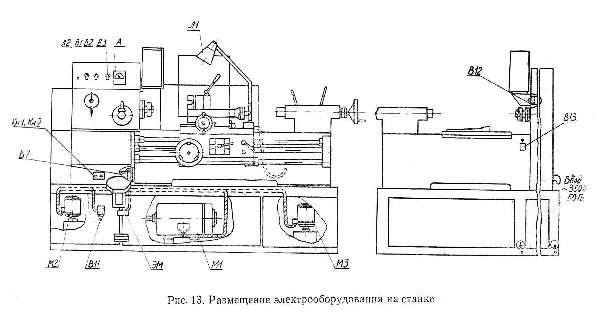 Розташування електроустаткування на токарно-винторезном станке УТ16В