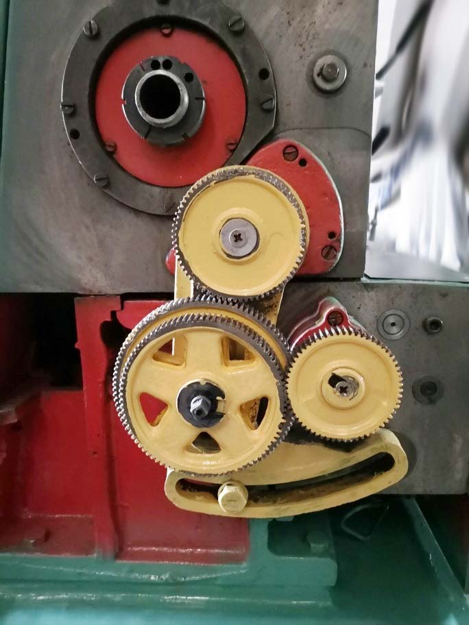 Шпиндель від приводного шківа отримує 12 швидкостей обертання «безпосередньо» і 12 — через зубчасті колеса перебору. Усього шпиндель отримує 24 швидкості обертання, з яких 6 швидкостей під час роботи з перебором і без перебору збігаються за величиною. Таким чином, шпиндель має .18 різних швидкостей обертання.