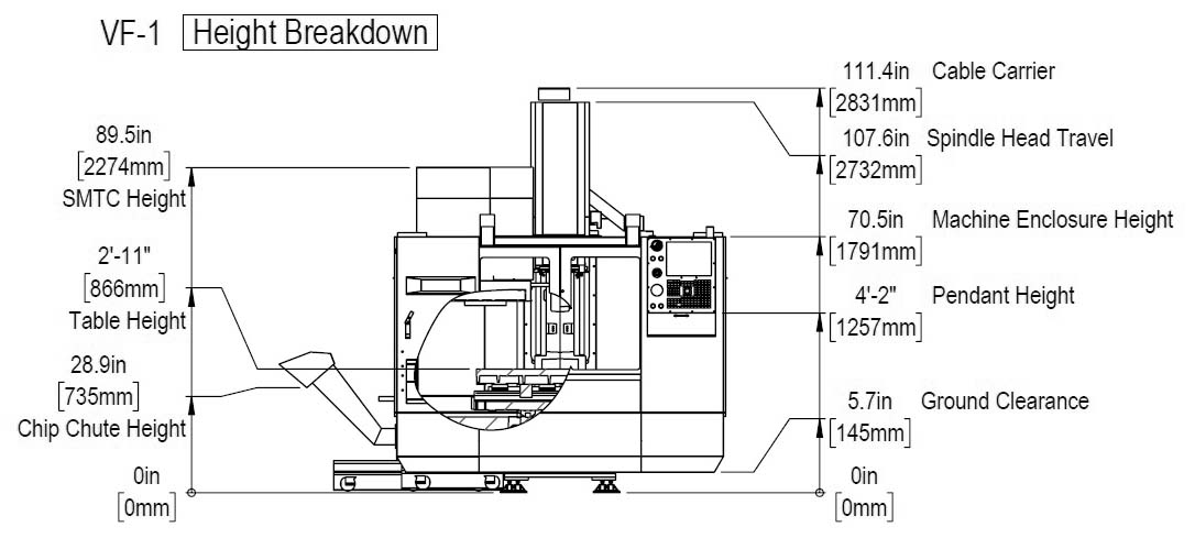Вертикальные розміри фрезерного обрабатывающего центра VF-1