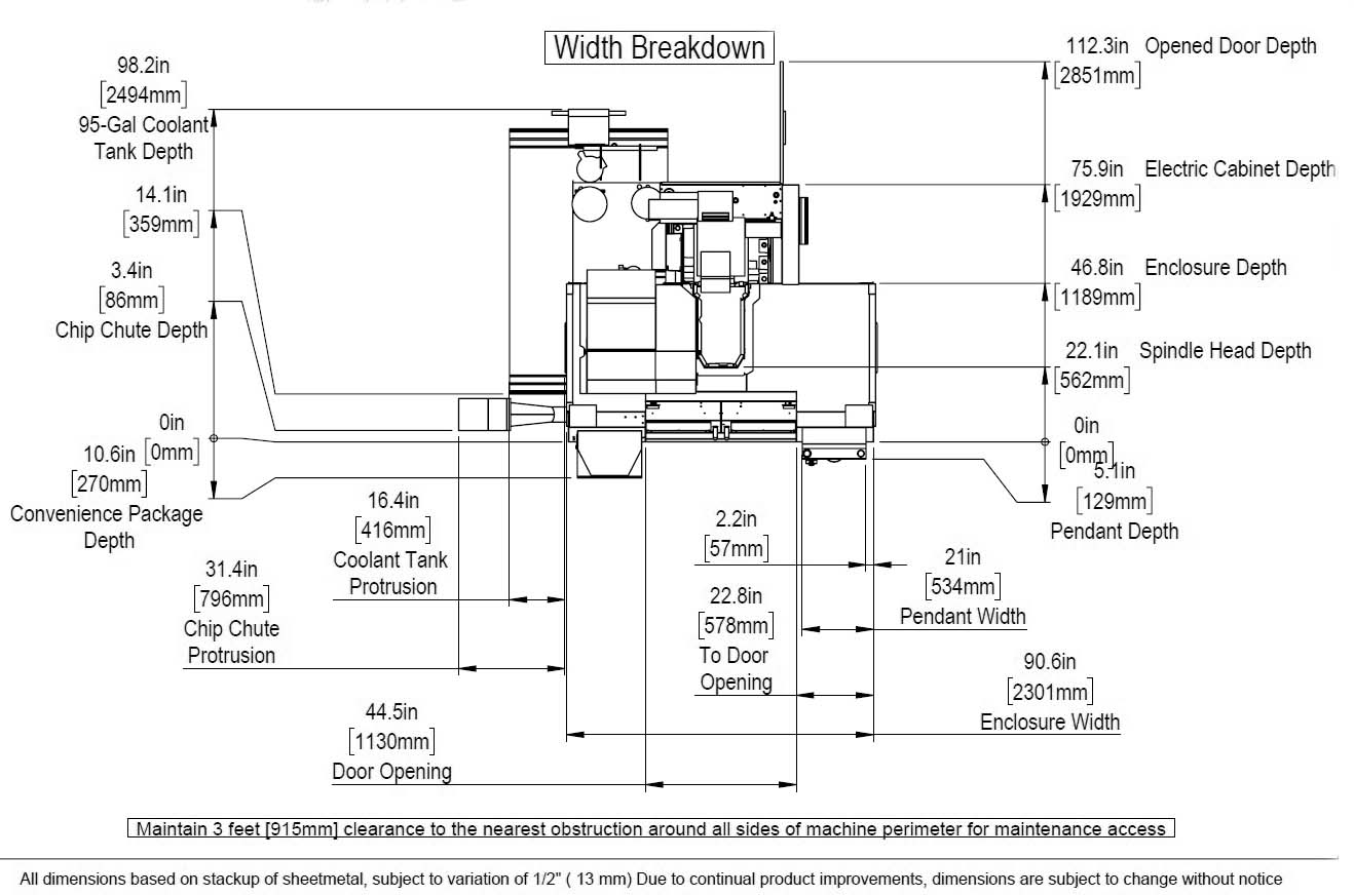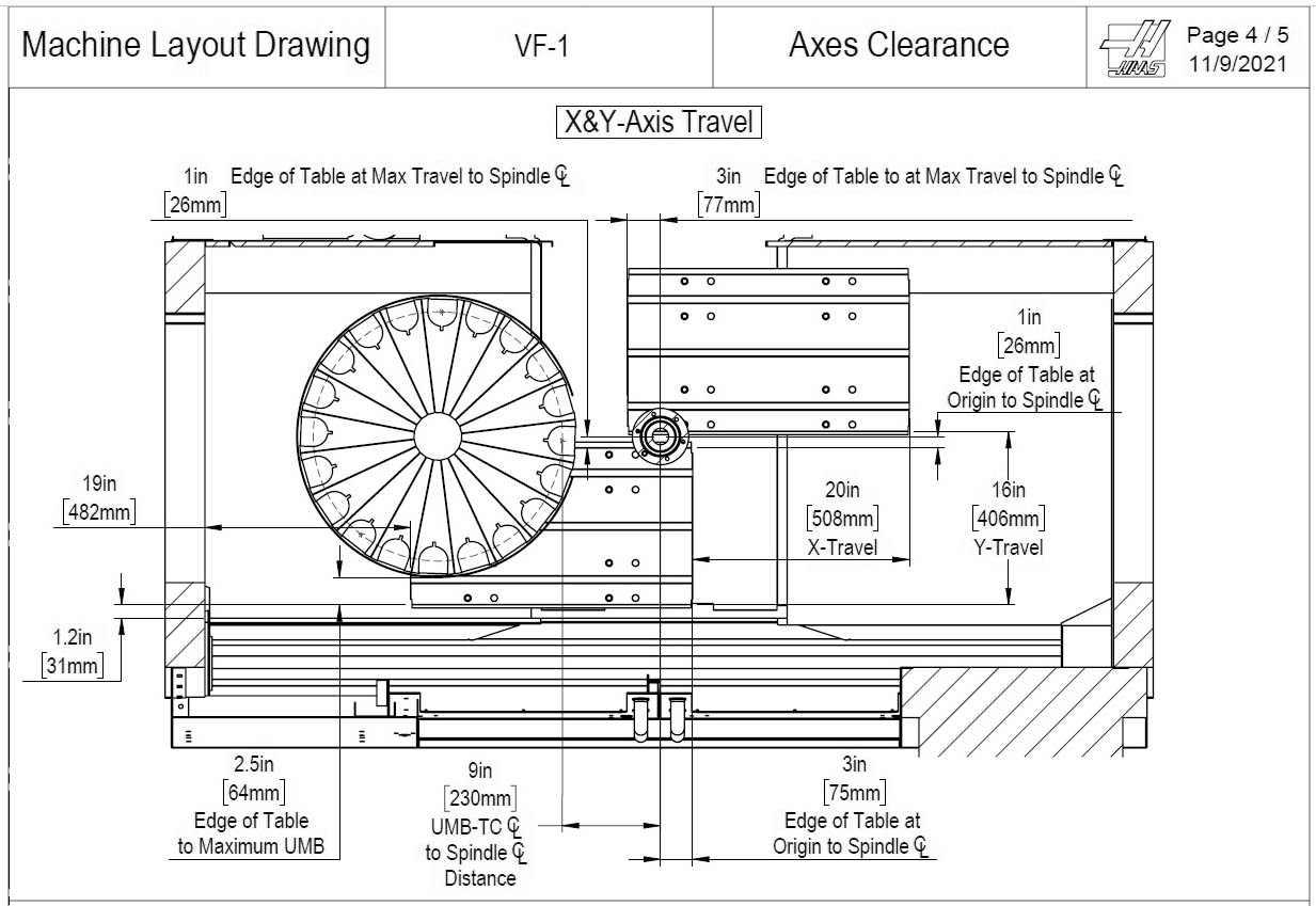 VF-1 горизонтальные розміри фрезерного обрабатывающего центра. Дивитись у збільшеному масштабі