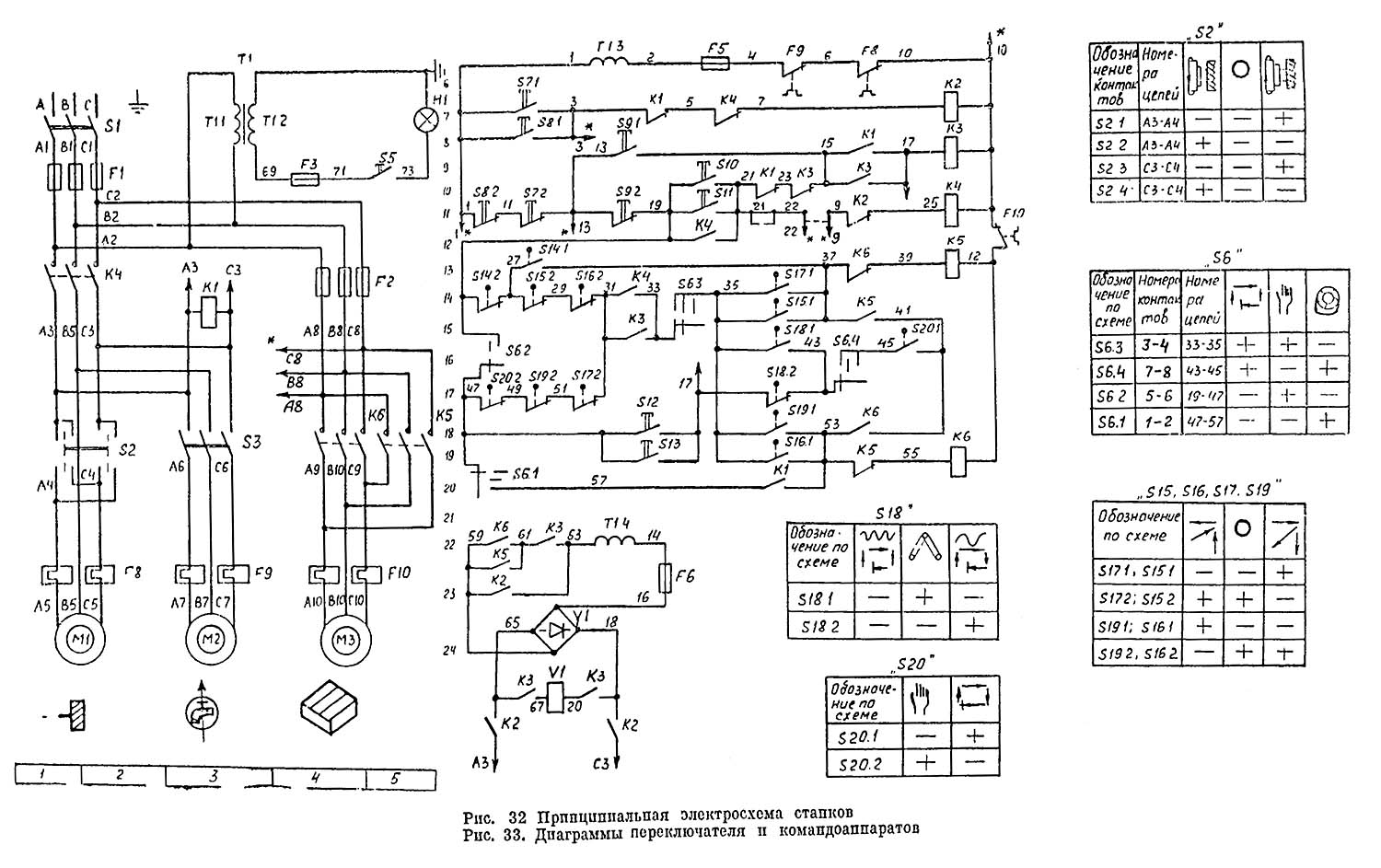 При работе на одной из подач возможность случайного увімкнення другой подачі взаимоисключается, блокировка осуществляется конечными выключателями Sl5..S19.