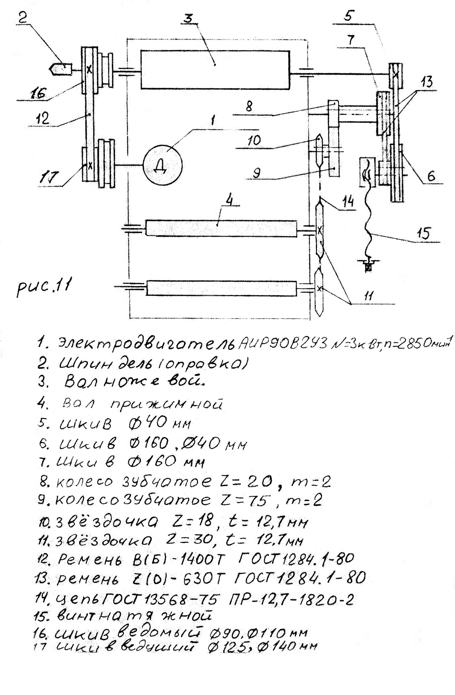 Кінематична схема комбинированного верстата ВЗ-335. Дивитись у збільшеному масштабі