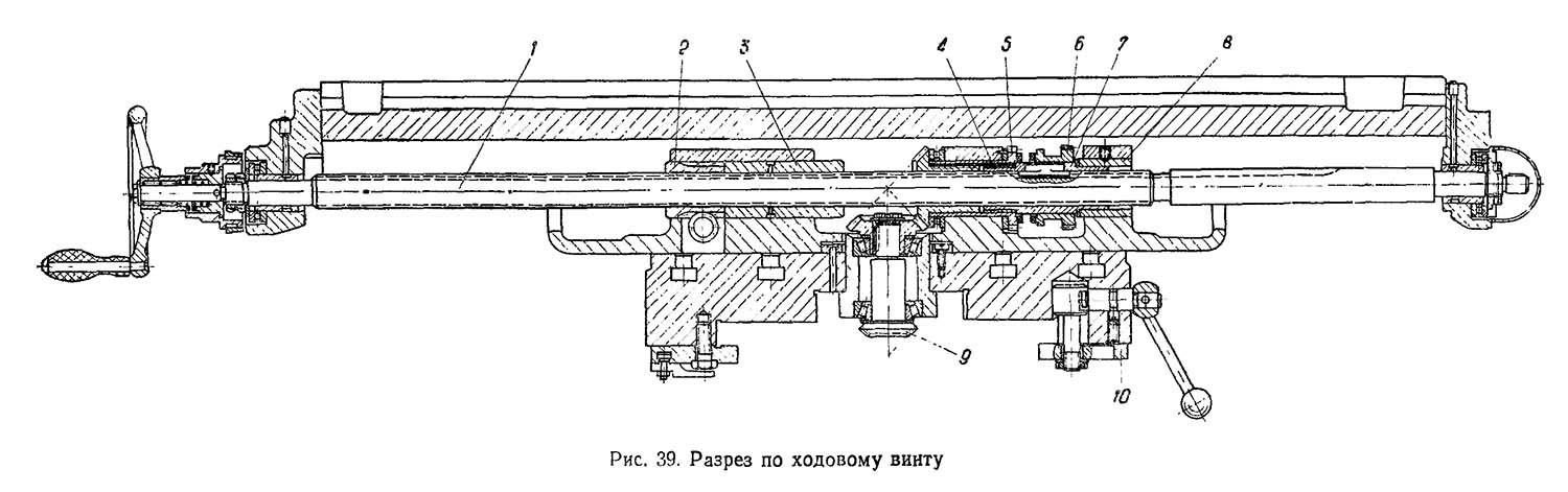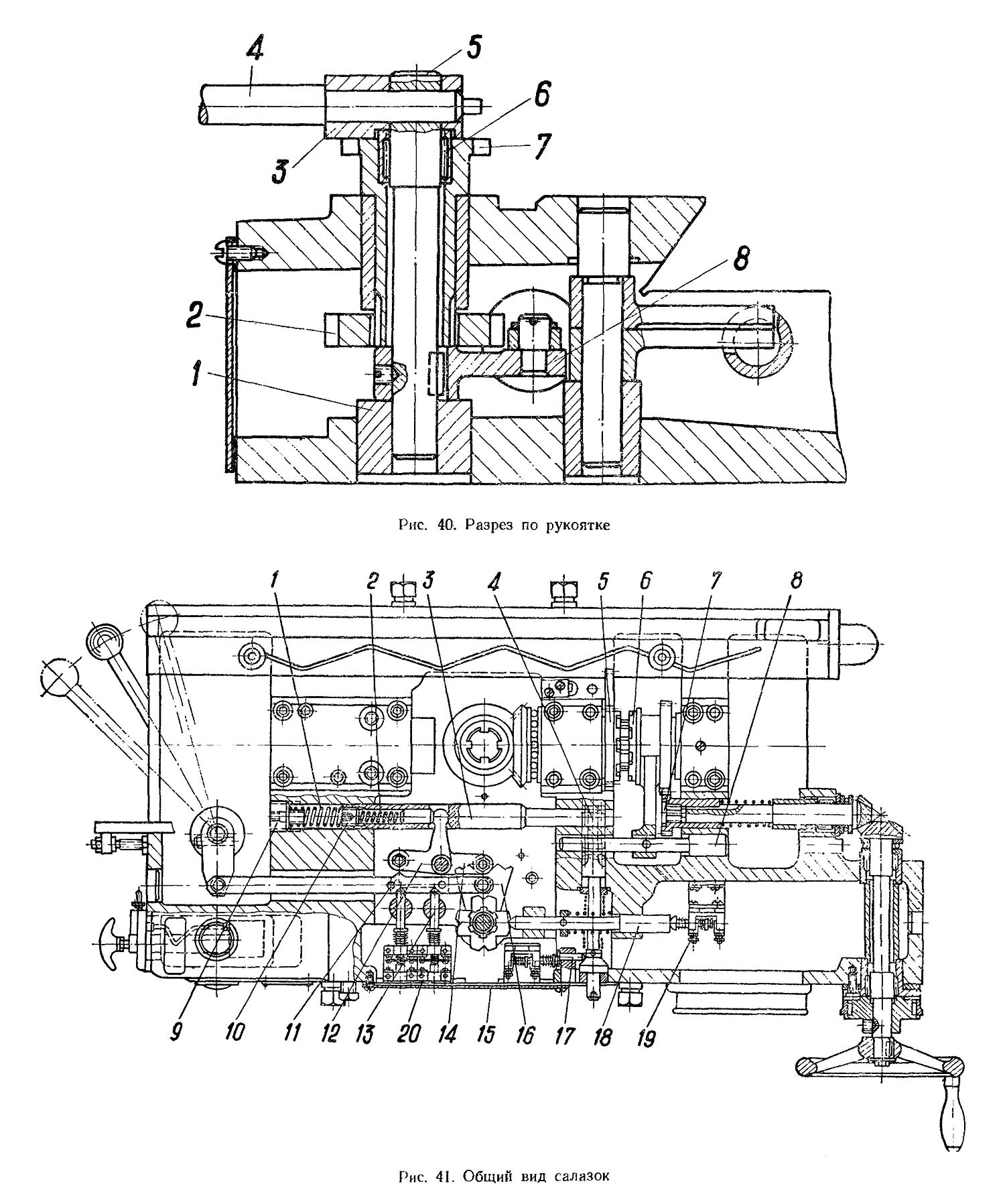 Рукоятка продольного ходу жестко соединена з осью 5 (рис. 40).