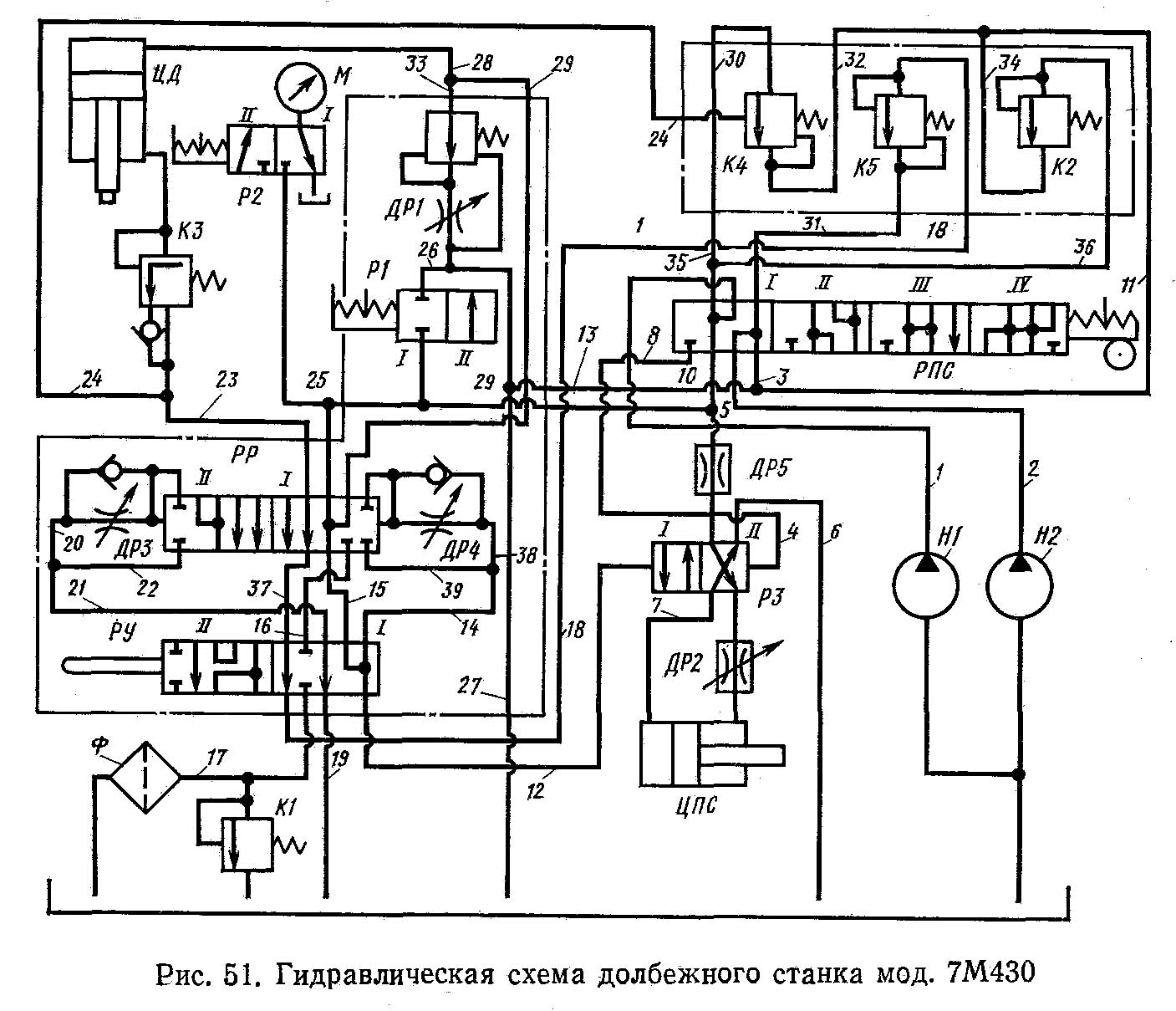 Гідросхема долбежного верстата 7м430. Дивитись у збільшеному масштабі