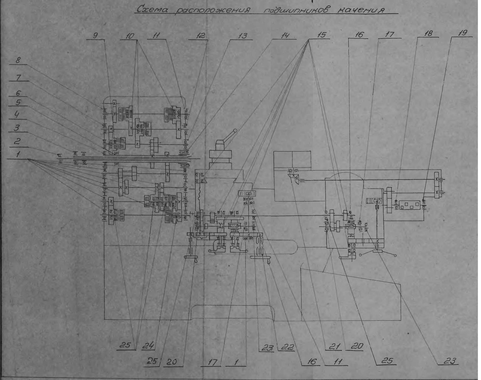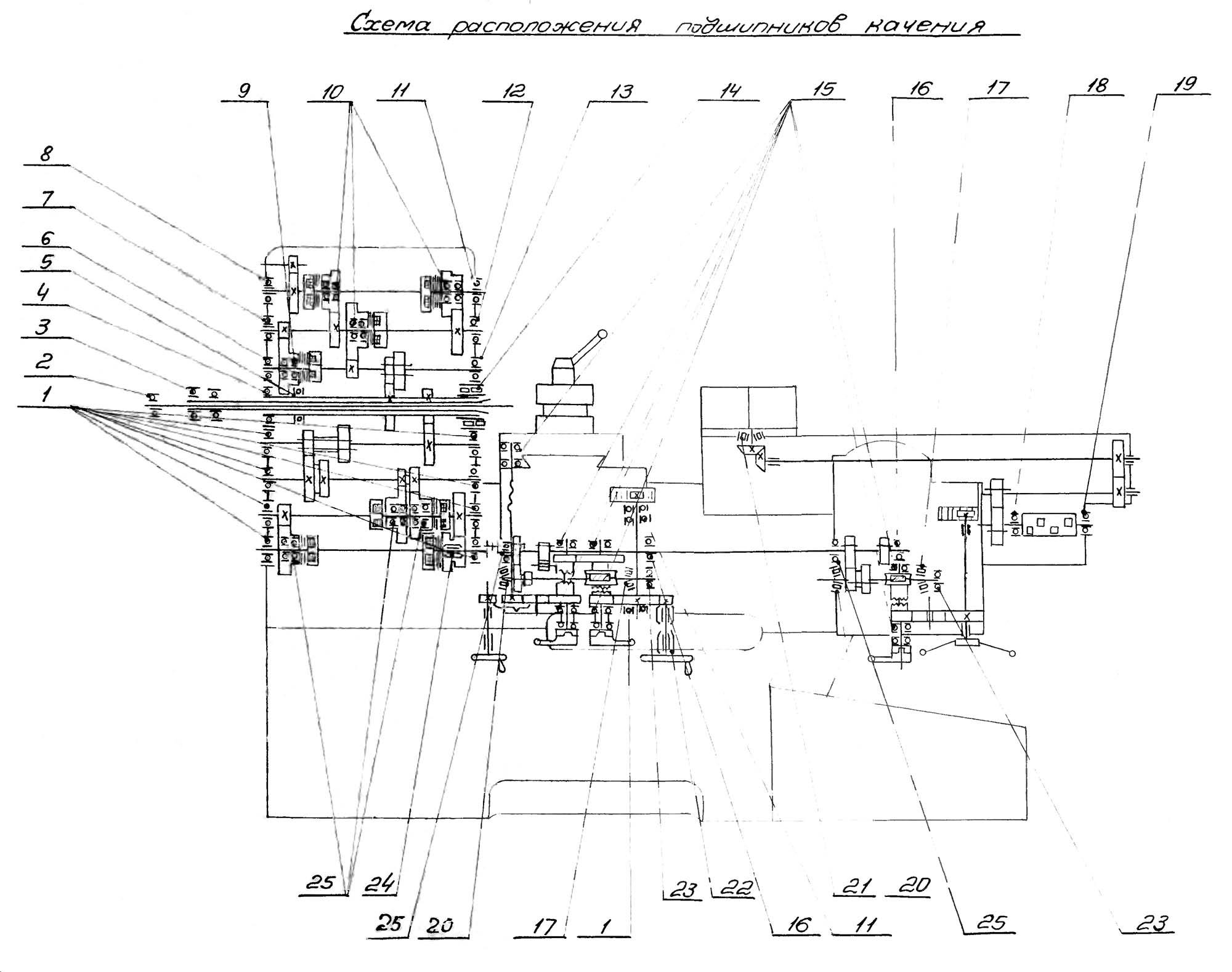 Схема установки підшипників схема на токарно-револьверному верстаті 1340