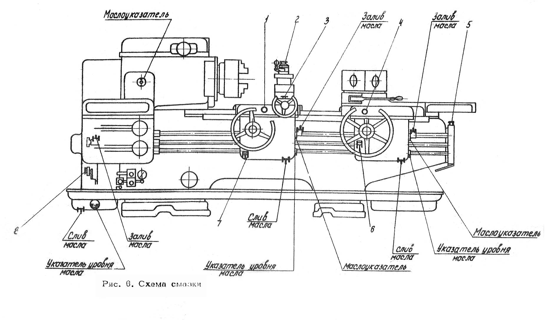 Точки змазки токарно-револьверного верстата 1365. Дивитись у збільшеному масштабі