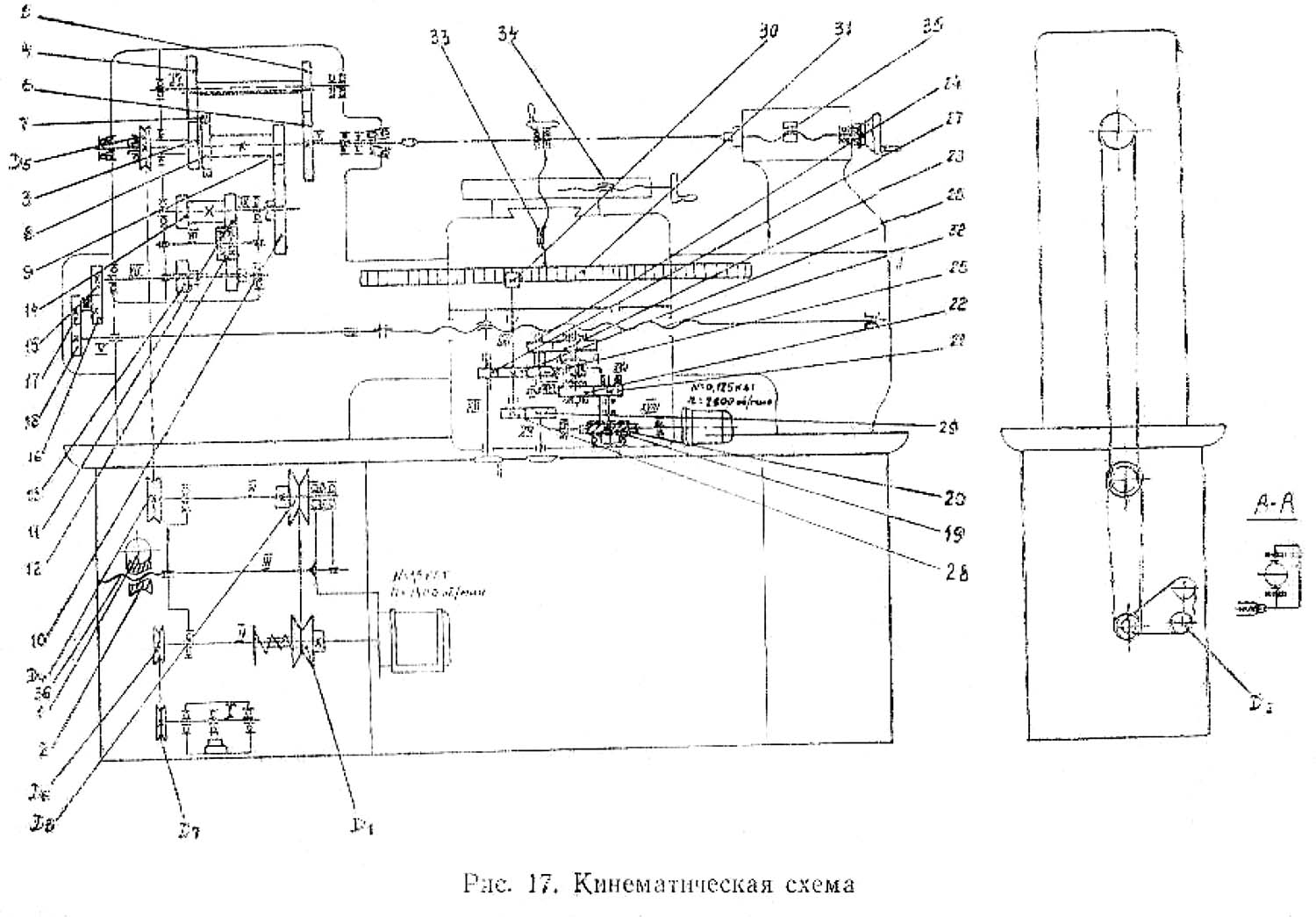 Схема кінематична токарно-гвинторізного верстата 1604. Дивитись у збільшеному масштабі