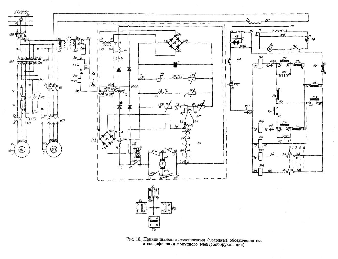 Принципиальная електрична схема токарно-гвинторізного верстата 1604. Дивитись у збільшеному масштабі