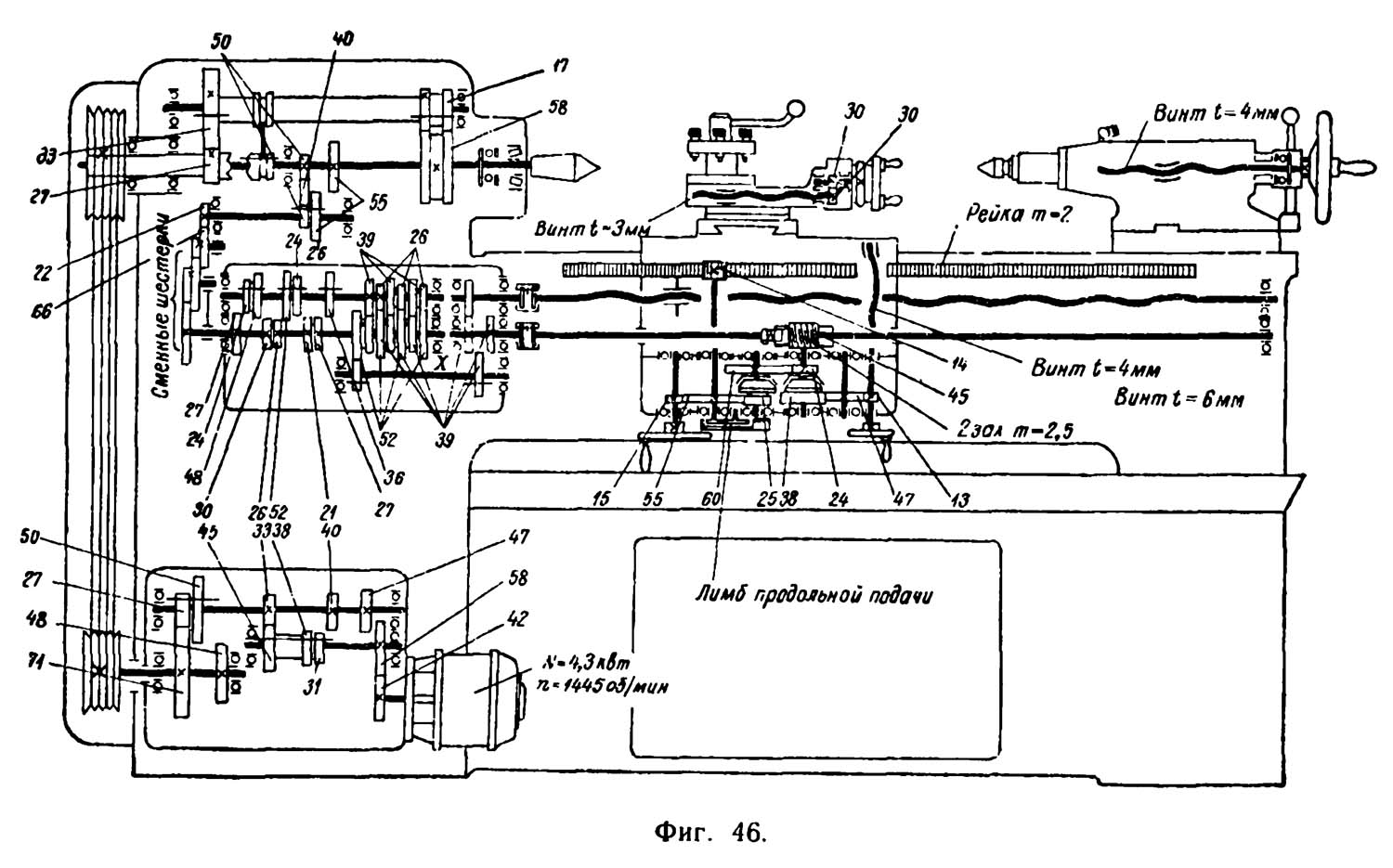 Від шпинделя рух передається на гітару і від неї на вхідний вал коробки подач.
