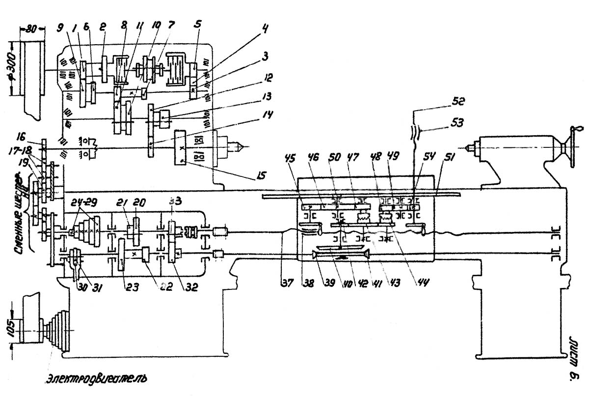 Від шпинделя рух передається на гітару і від неї на вхідний вал коробки подач.