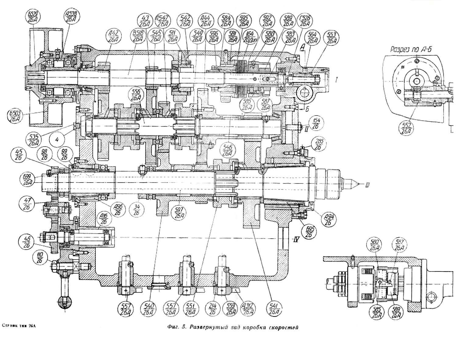 Развертка коробки швидкостей токарно-гвинторізного верстата 162. Дивитись у збільшеному масштабі