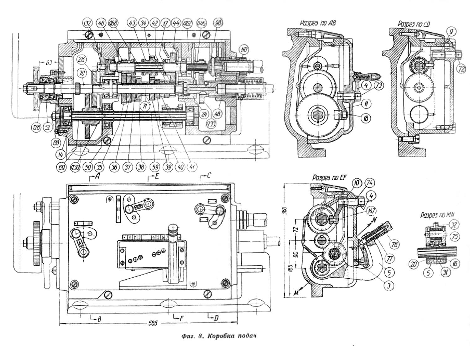 Коробка подач токарно-гвинторізного верстата 162. Дивитись у збільшеному масштабі