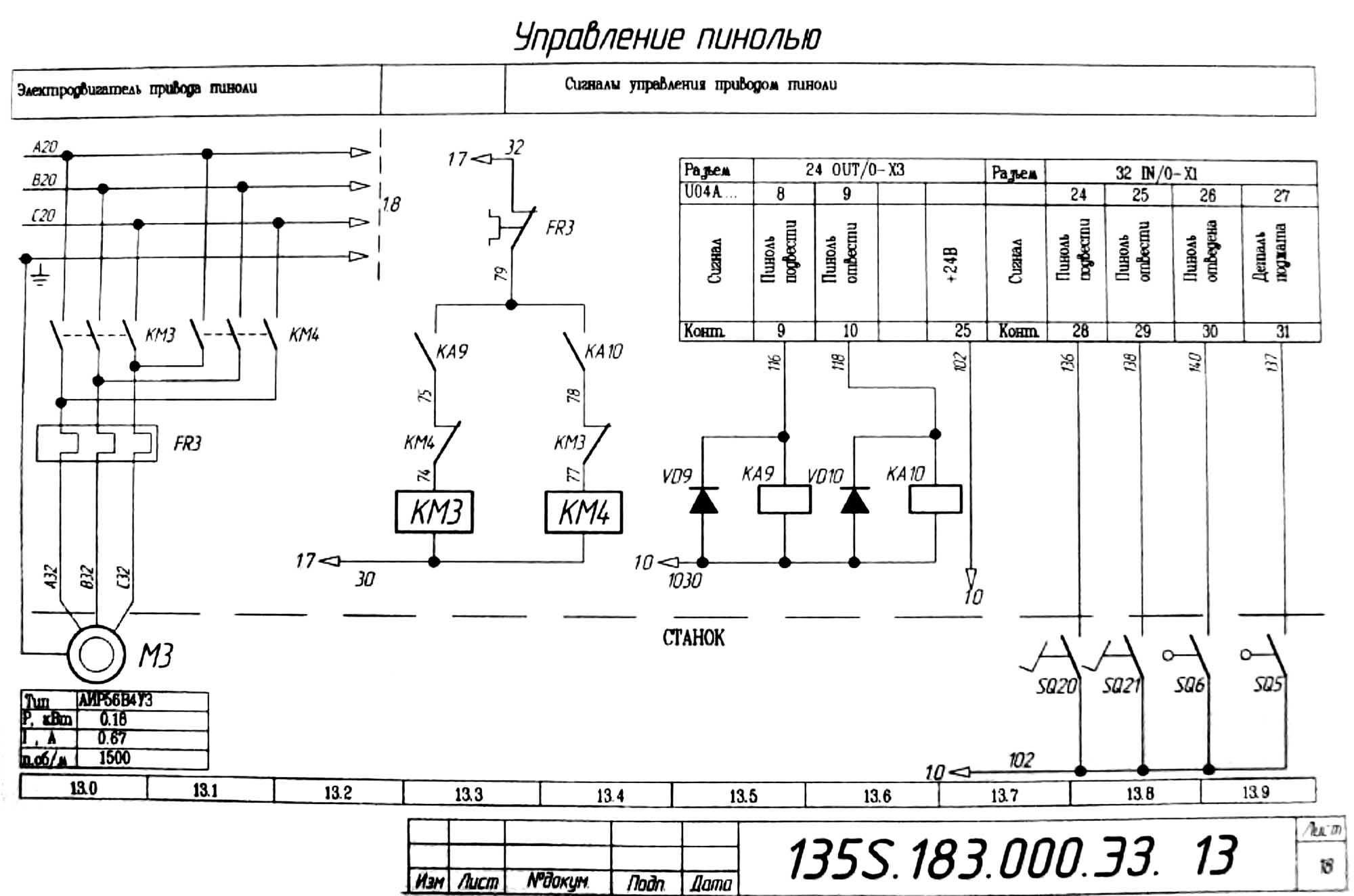 Схема електрична керування пинолью токарного верстата 16Б16Т1