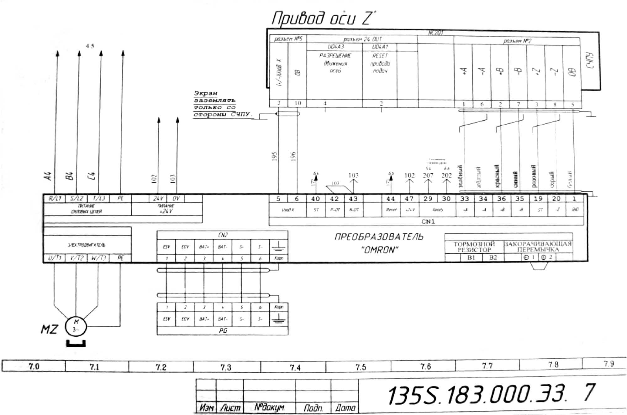 Схема електрична живлення і сигналов керування приводами фирмы ОМРОН токарного верстата 16Б16Т1