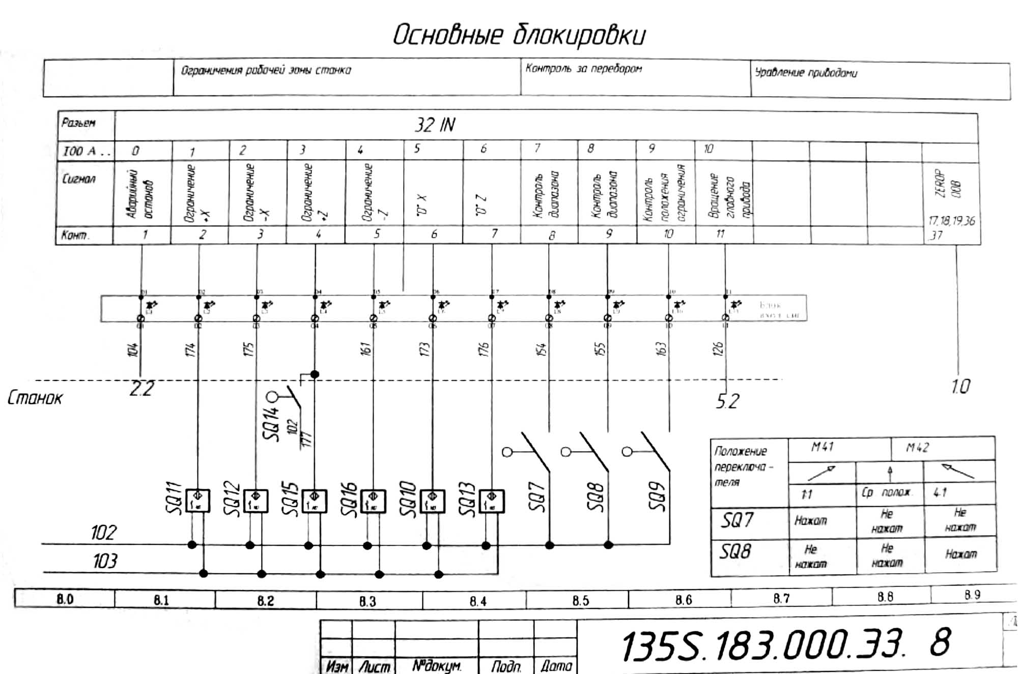 Контроль за состоянием рабочих органів верстата осуществляется з помощью входных сигналов, поступающих на разъемы 32 IN, 16 IN модуля I/O.