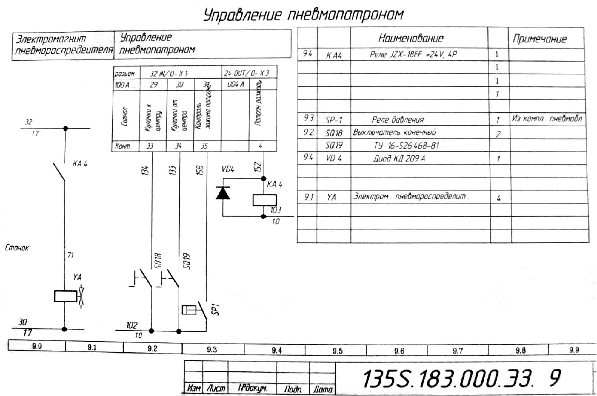 Схема електрична керування пневмопатроном токарного верстата 16Б16Т1