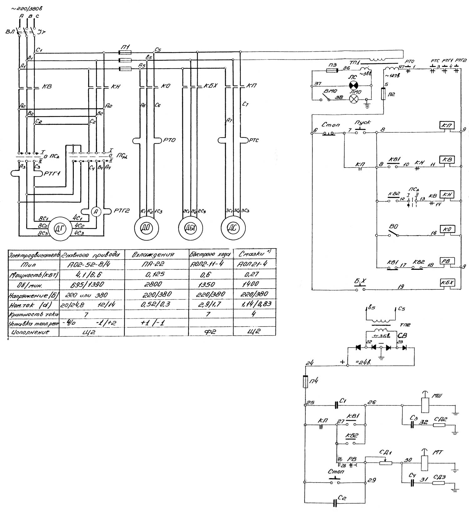 Електрична схема токарно-гвинторізного верстата 16Б20п