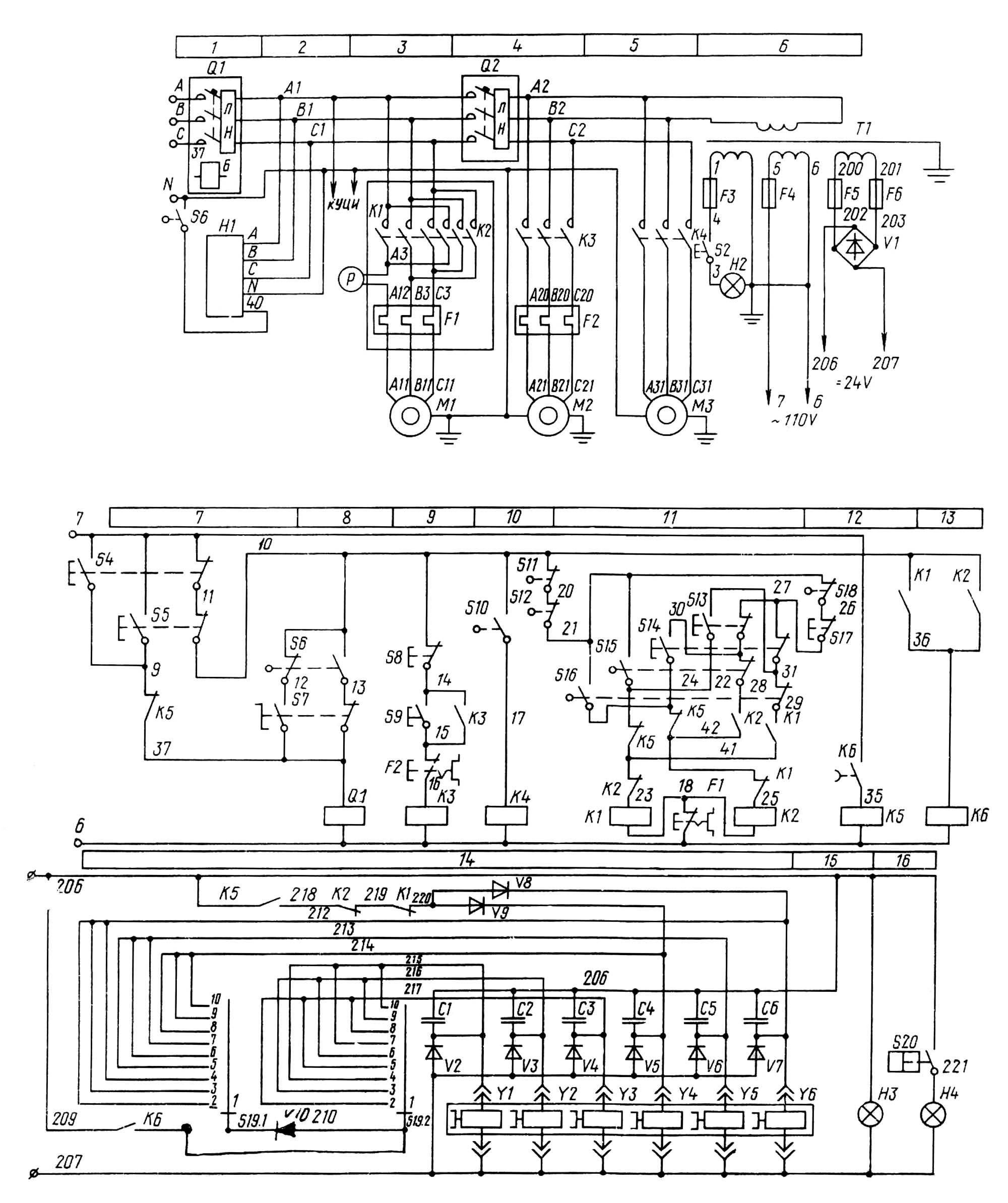 Схема електрична токарно-гвинторізного верстата 16Д20. Скачать в увеличенном масштабе