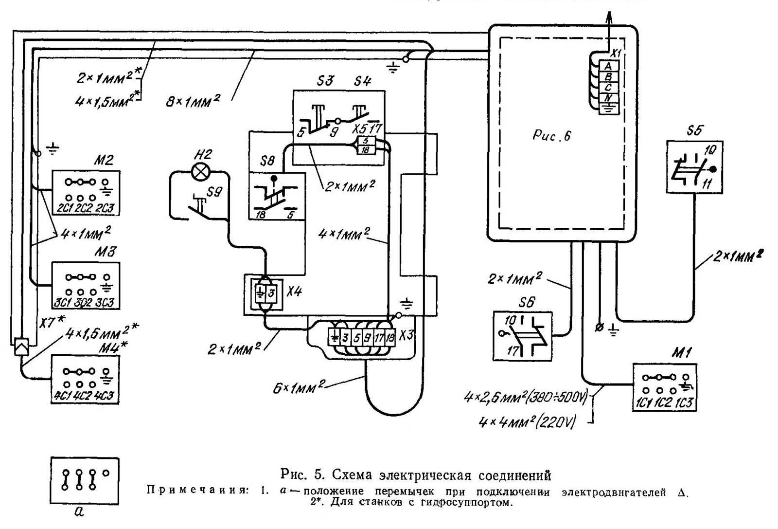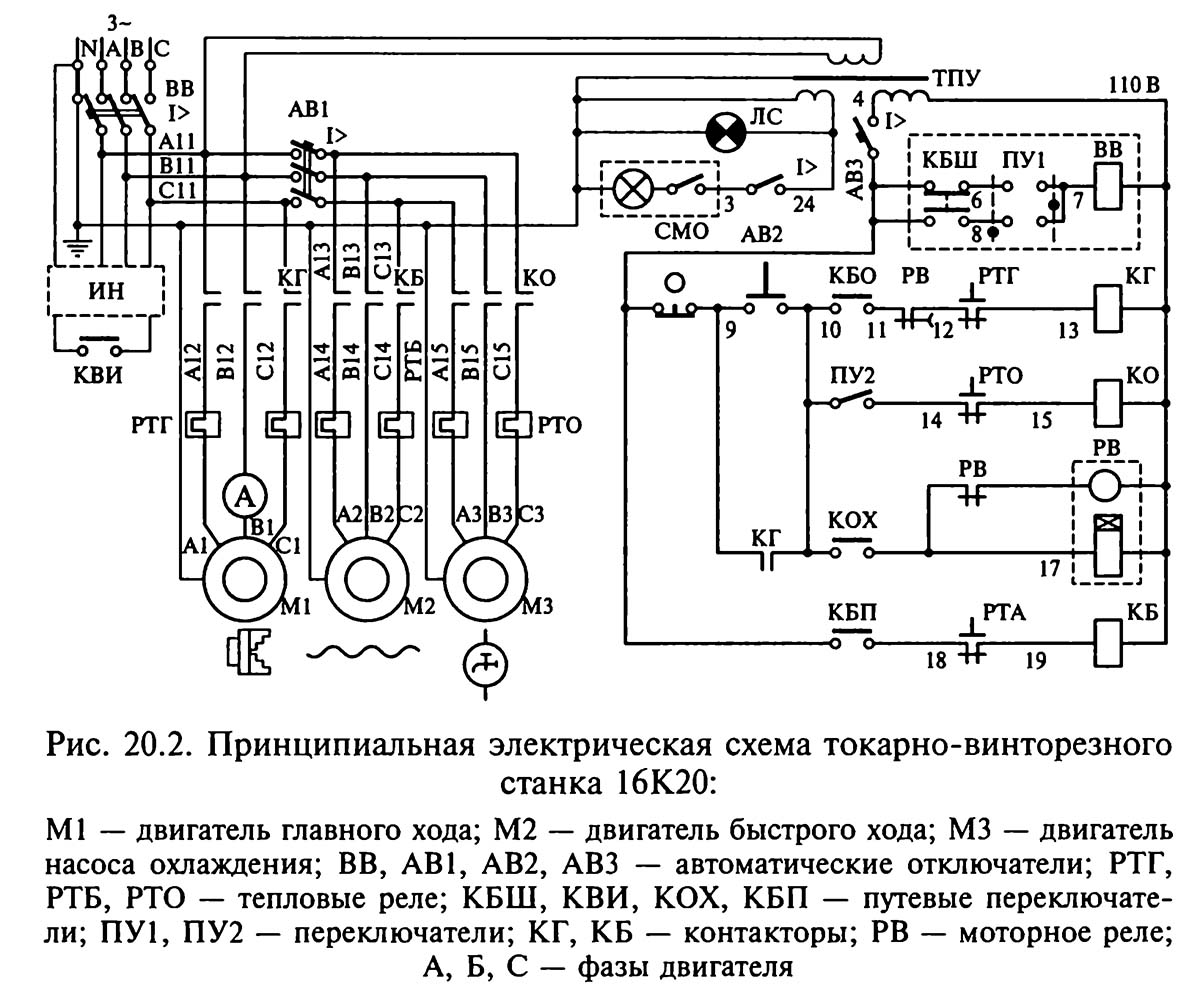 Електрична схема з'єднань токарно-гвинторізного верстата 16К20