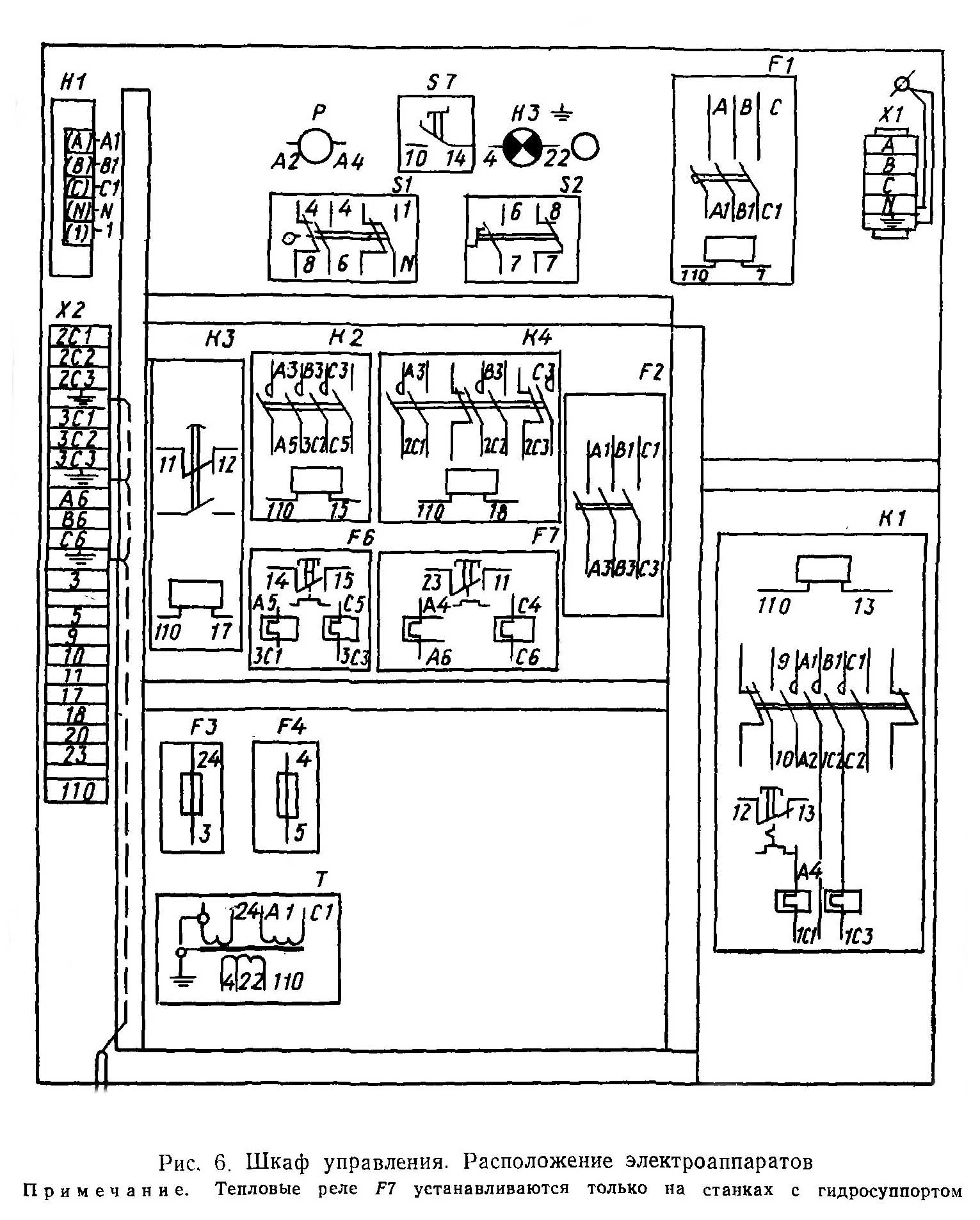Путевой выключатель S1 смонтирован в шкафу керування, микропереключатель 55 — на корпусе коробки подач.