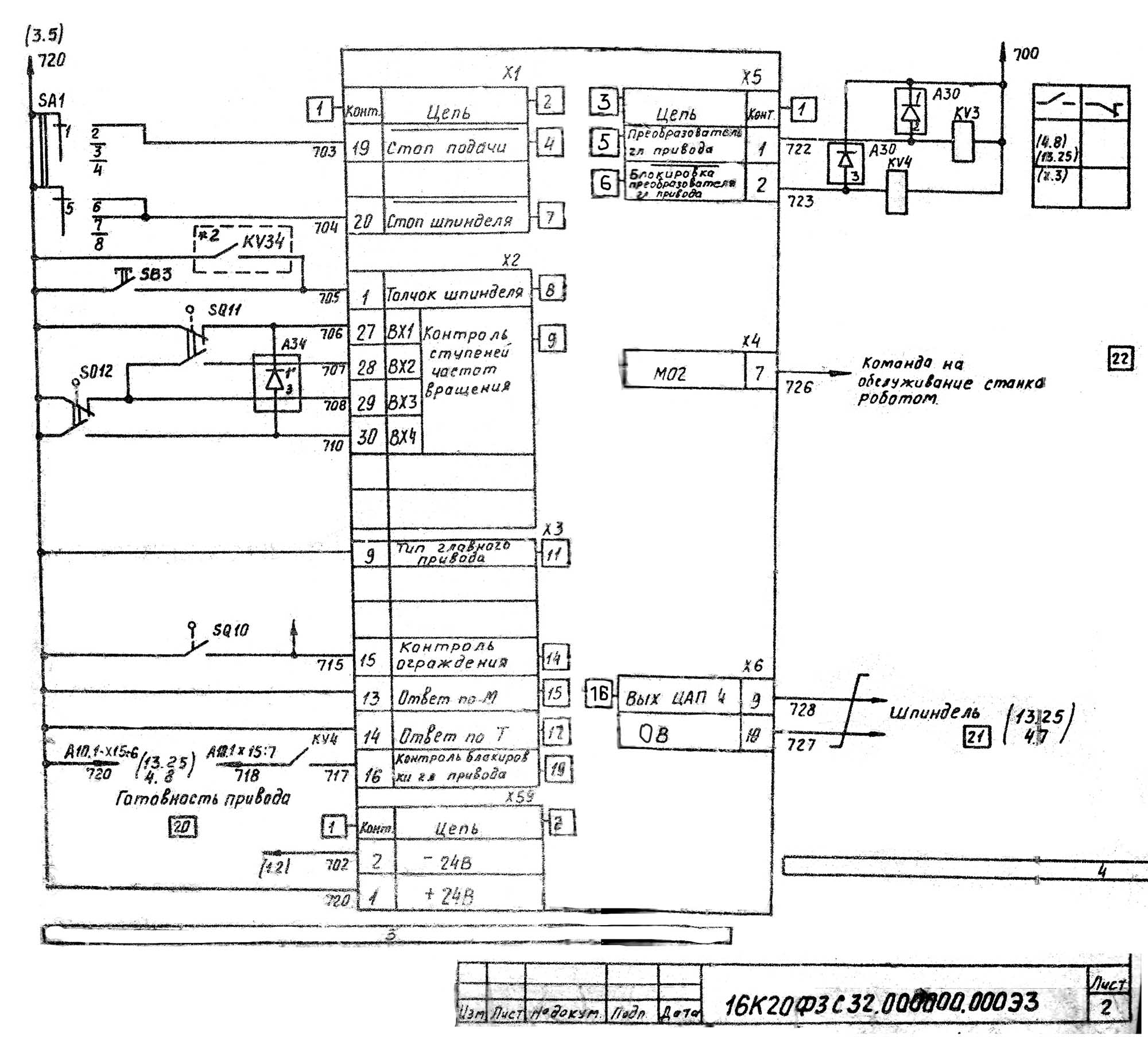 Схема електрична токарного верстата з ЧПУ 16К20Ф3