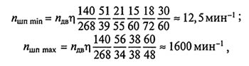 В зависимости от варіантівувімкнення зубчатых колес в коробке швидкостей можно получить 22 различных значения частот обертання шпинделя.
