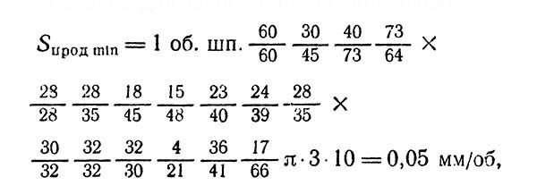 Рівняння кінематичної ланцюги для получения минимальной поздовжньої подачі можно записать в следующем виде: