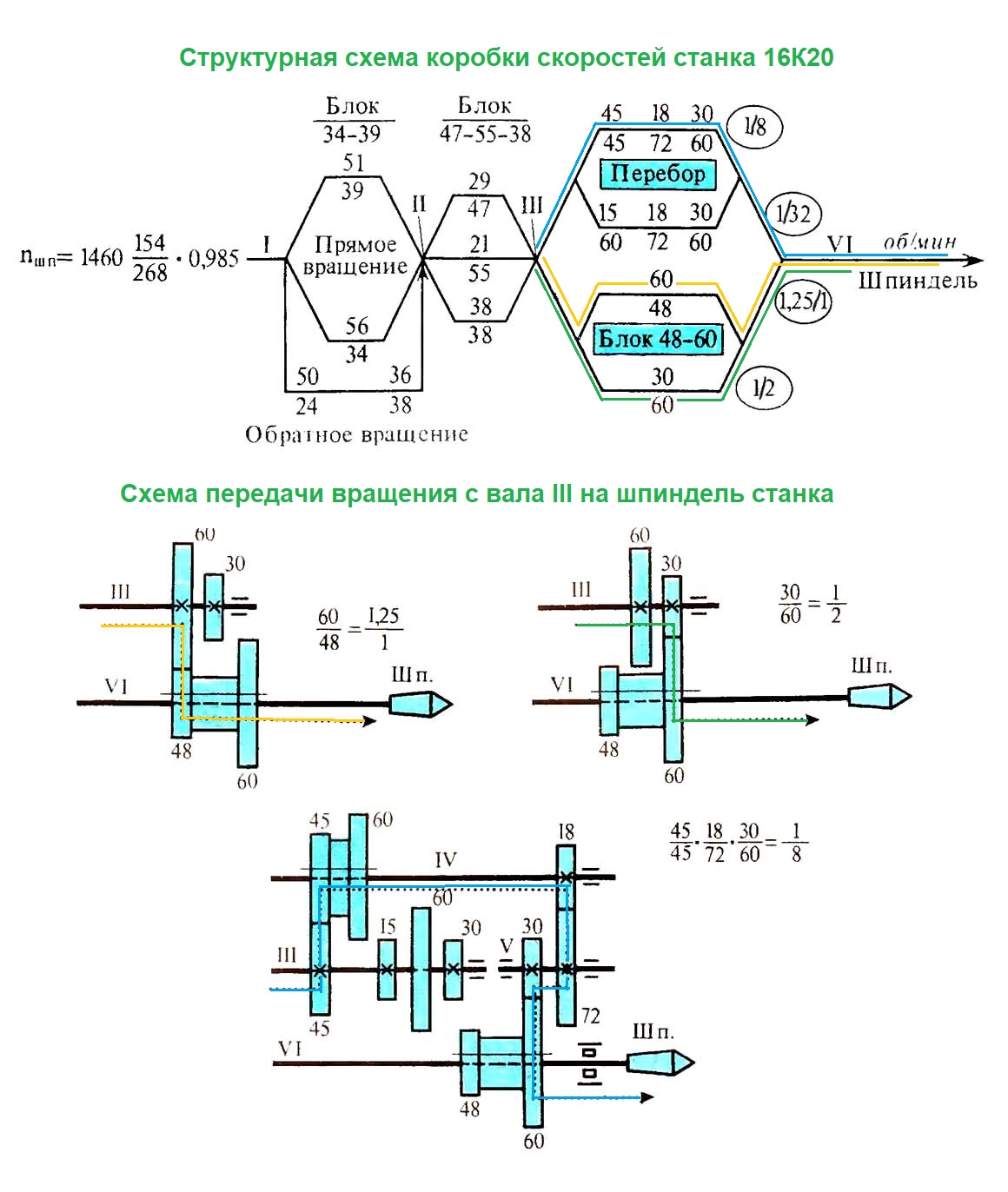 Схема коробки подач токарного верстата 16к20. Скачать в увеличенном масштабе