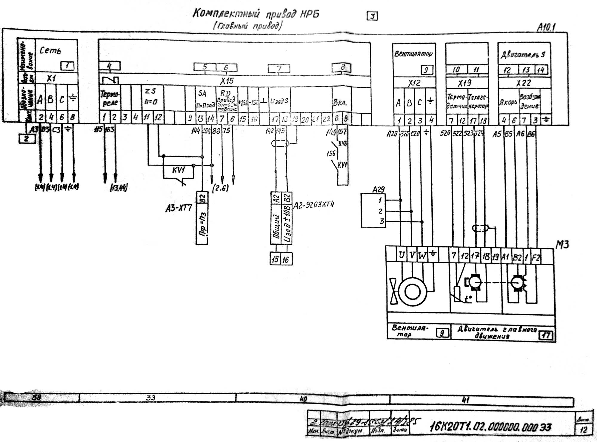 Керування двигателем головного приводу осуществляется преобразователем "Кемтор" (производства НРБ) по командам ОТ ОСУ (±10 В).