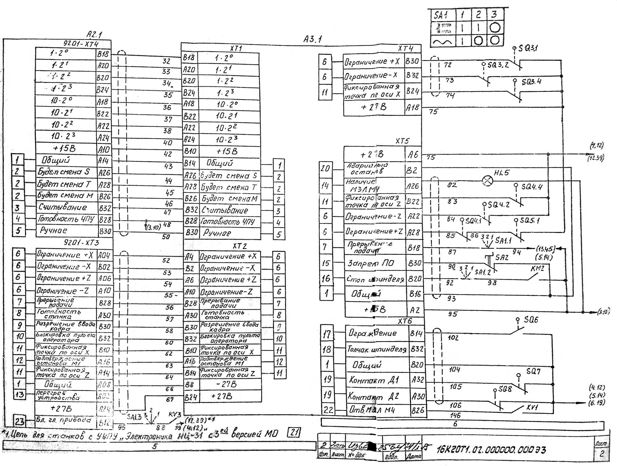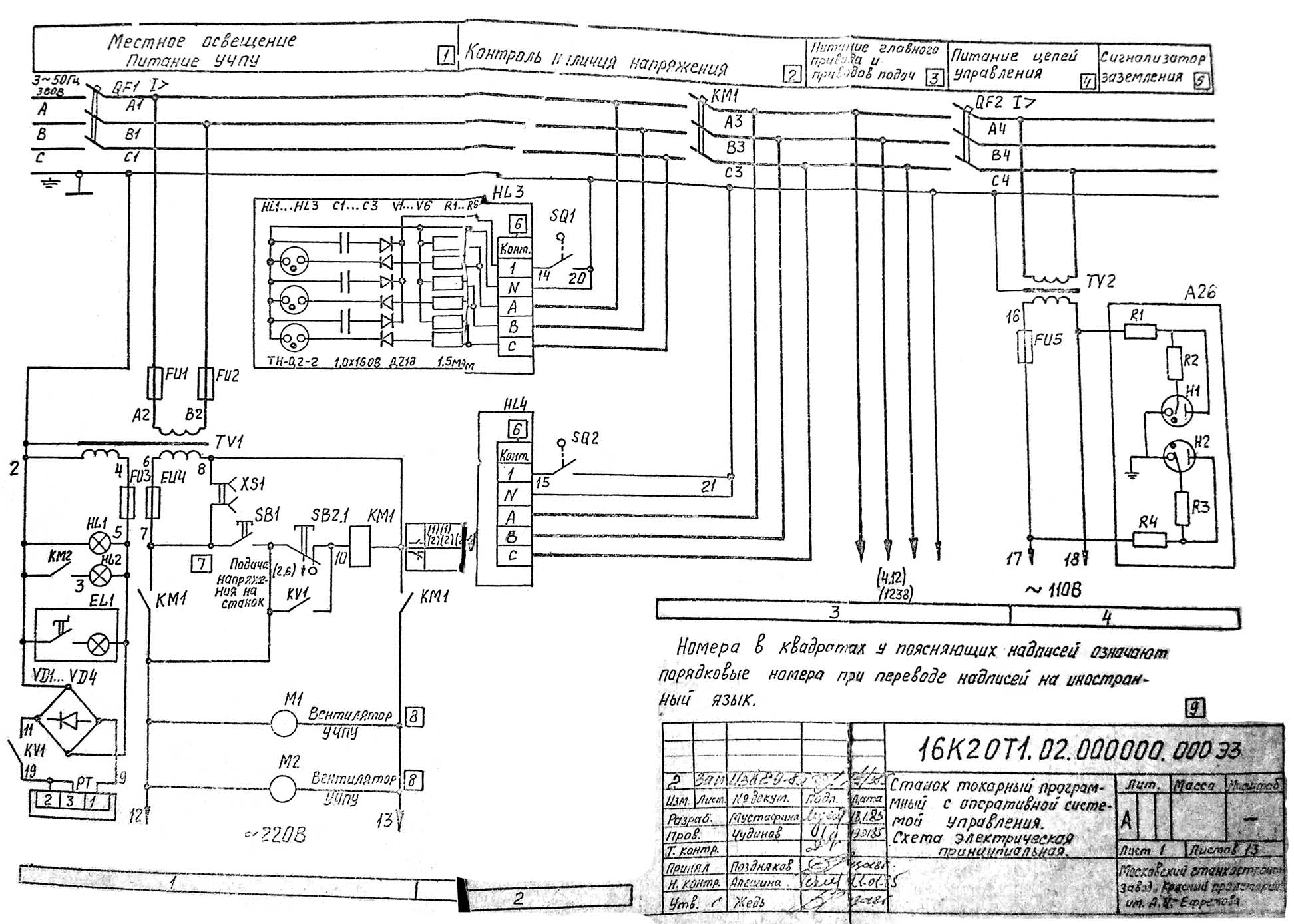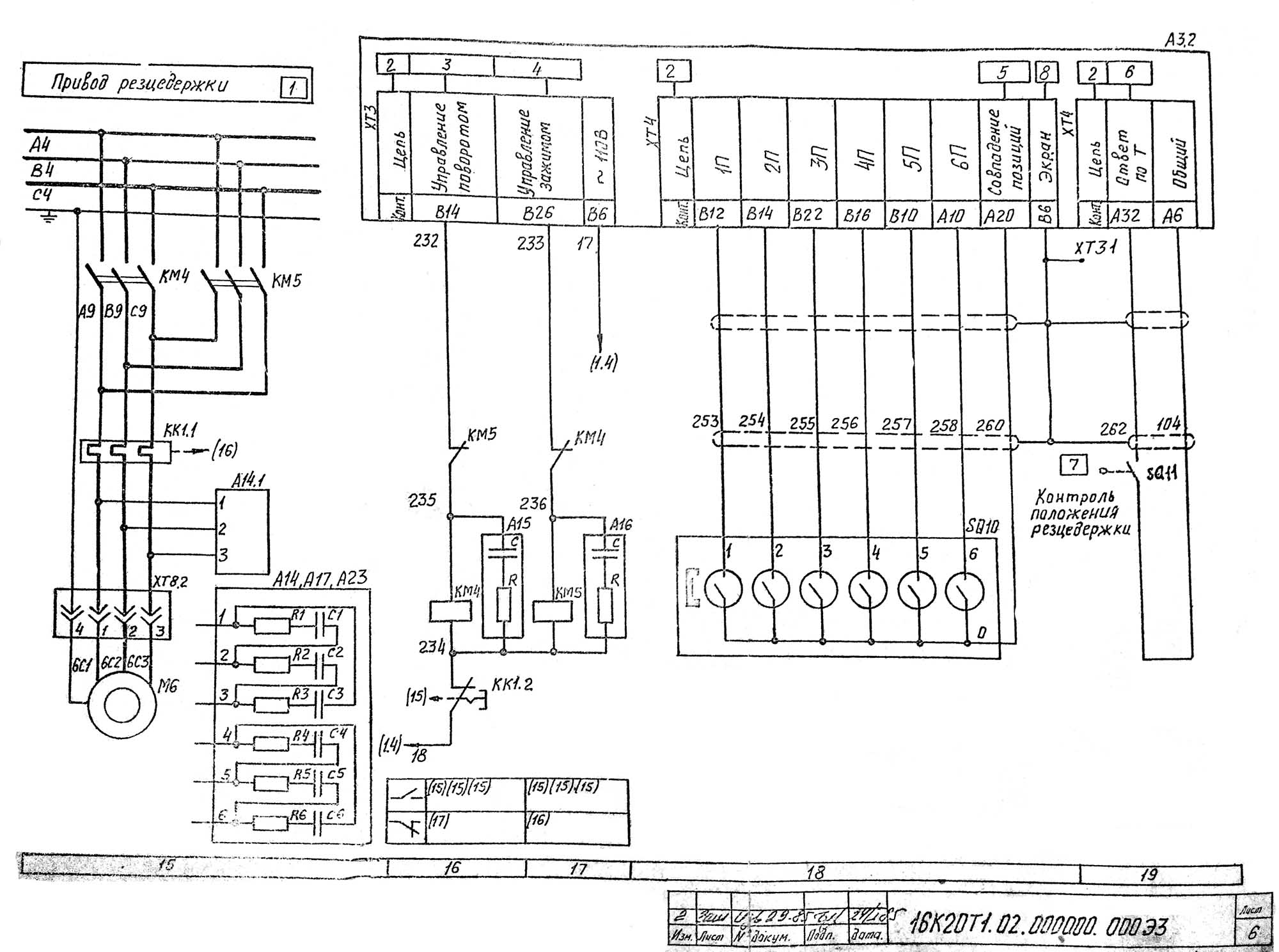 Електрична схема токарного верстата з ОСУ 16К20Т1
