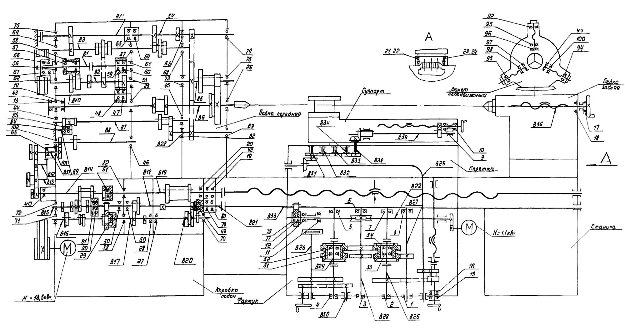 Кінематична схема токарно-гвинторізного верстата 16к40