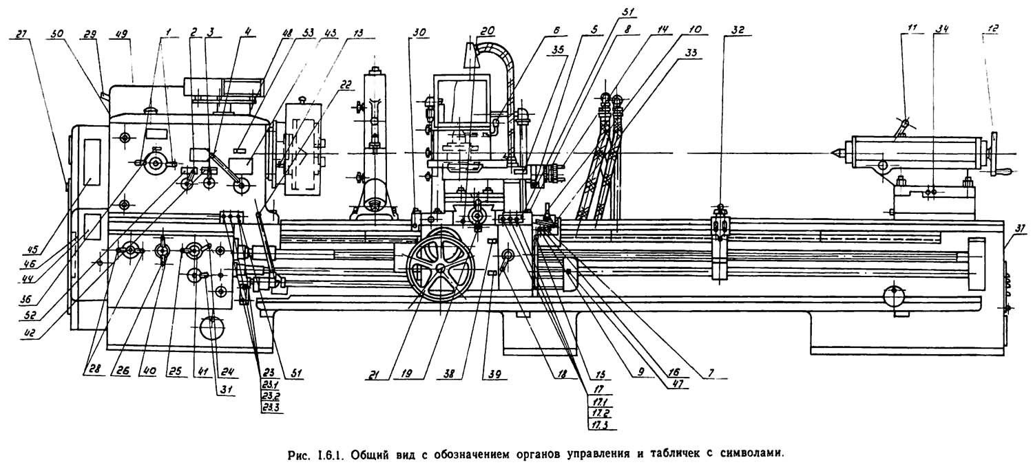 Розташування органів керування токарно-гвинторізним верстатом 16к40