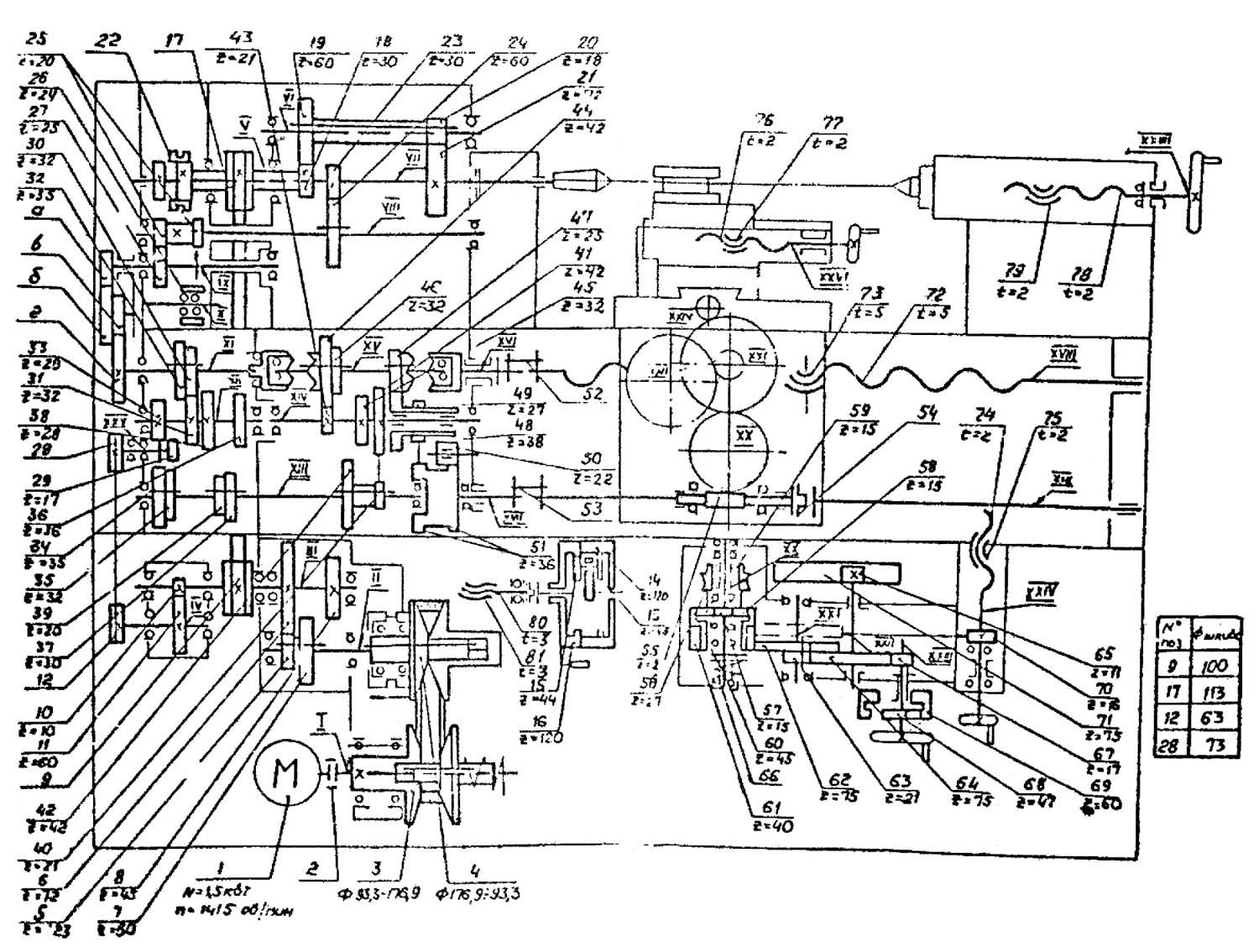 Кінематична схема токарно-гвинторізного верстата 16м05а