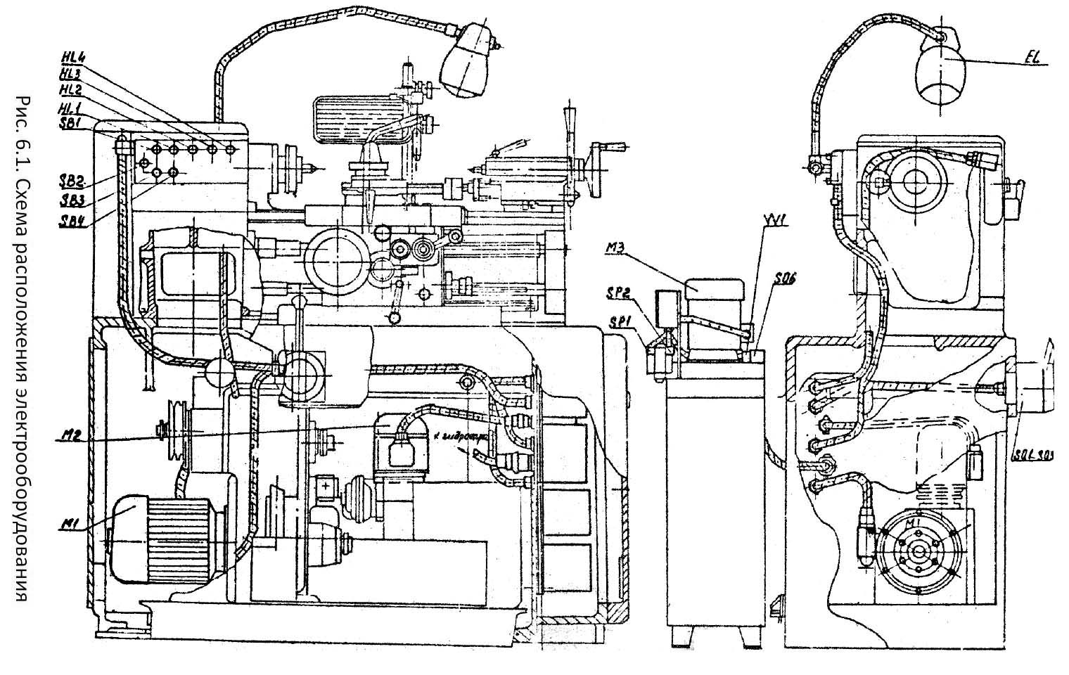 Схема розположення електроустаткування токарно-гвинторізного верстата 16М05А