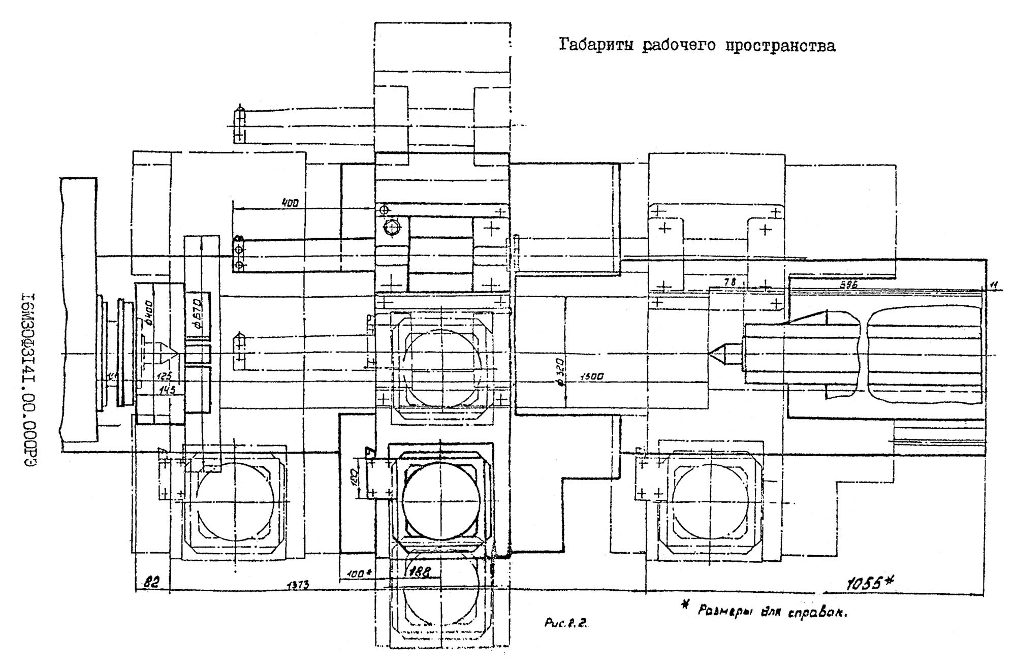 Габарит робочого простору токарного верстата з ЧПУ 16М30Ф3. Дивитись у збільшеному масштабі