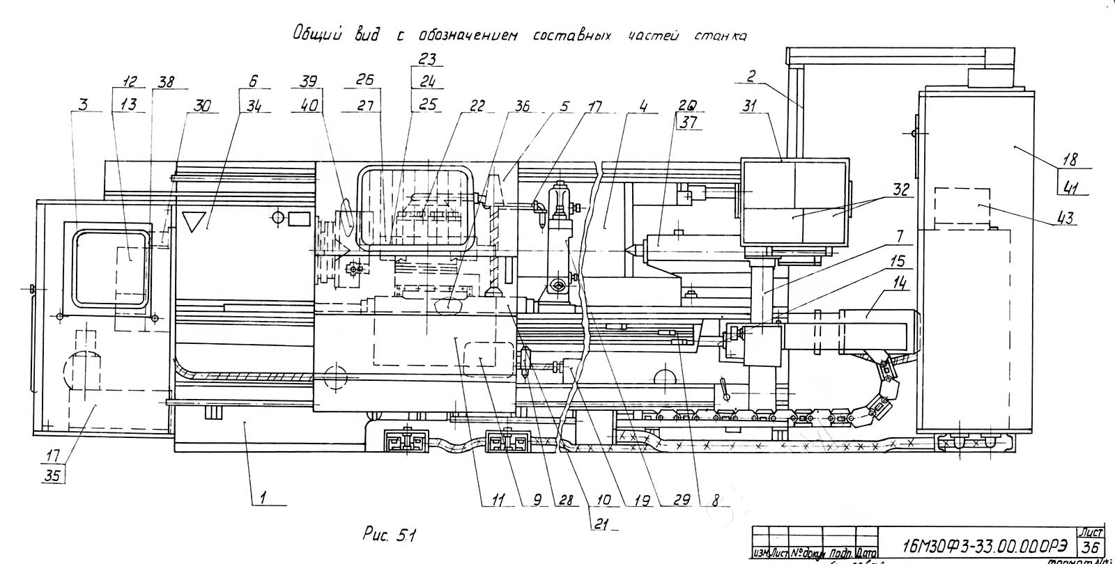 Список елементів токарного верстата 16М30Ф3-121. Дивитись у збільшеному масштабі