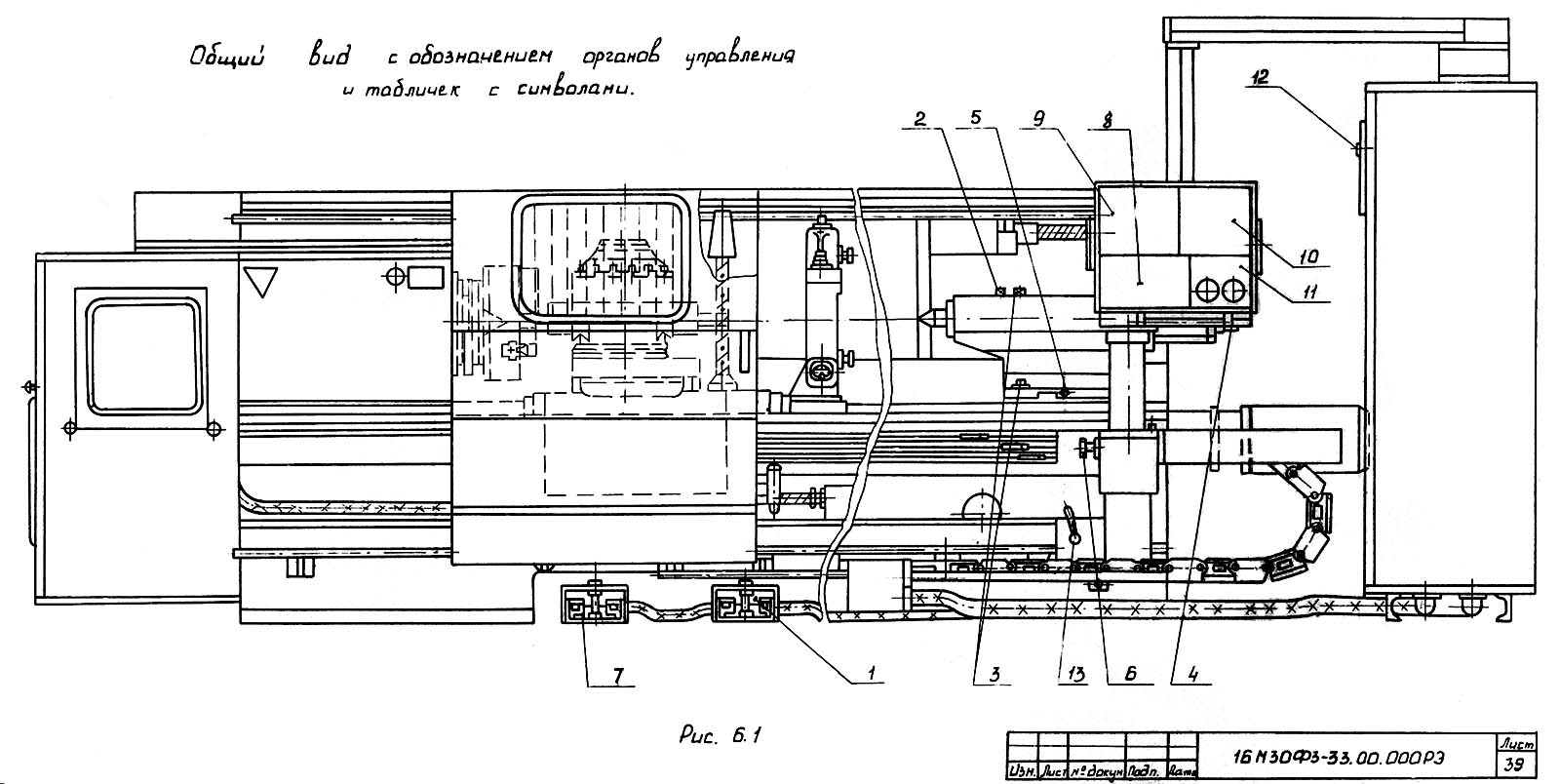 Розташування складових частин токарного верстата з ЧПУ 16М30Ф3. Дивитись у збільшеному масштабі