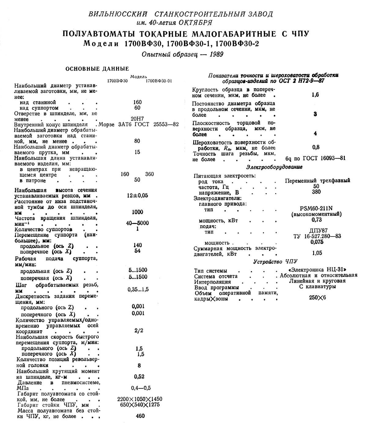 Виробник токарного малогабаритного верстата ЧПУ 1700ВФ30 - Вільнюський верстатобудівний завод ім. 40-річчя Жовтня .