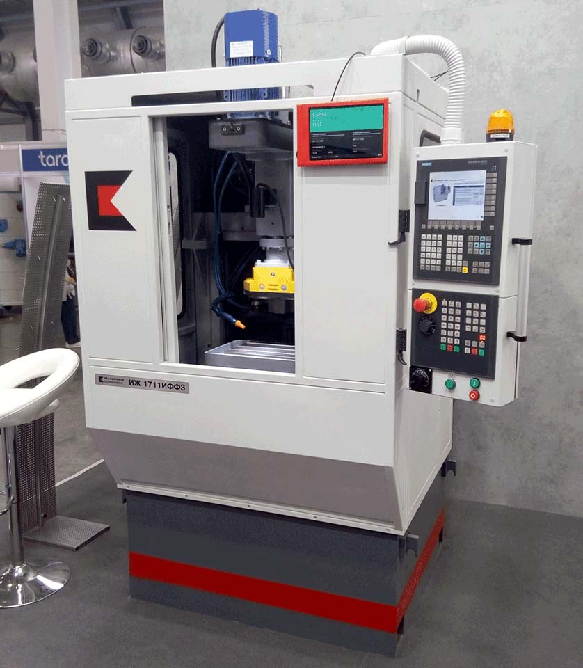 Вертикальный фрезерный верстат 1711ИФФ3 з ЧПУ Sinumerik 808D предназначен для фрезерування небольших деталей в условиях серийного і крупносерийного производства.