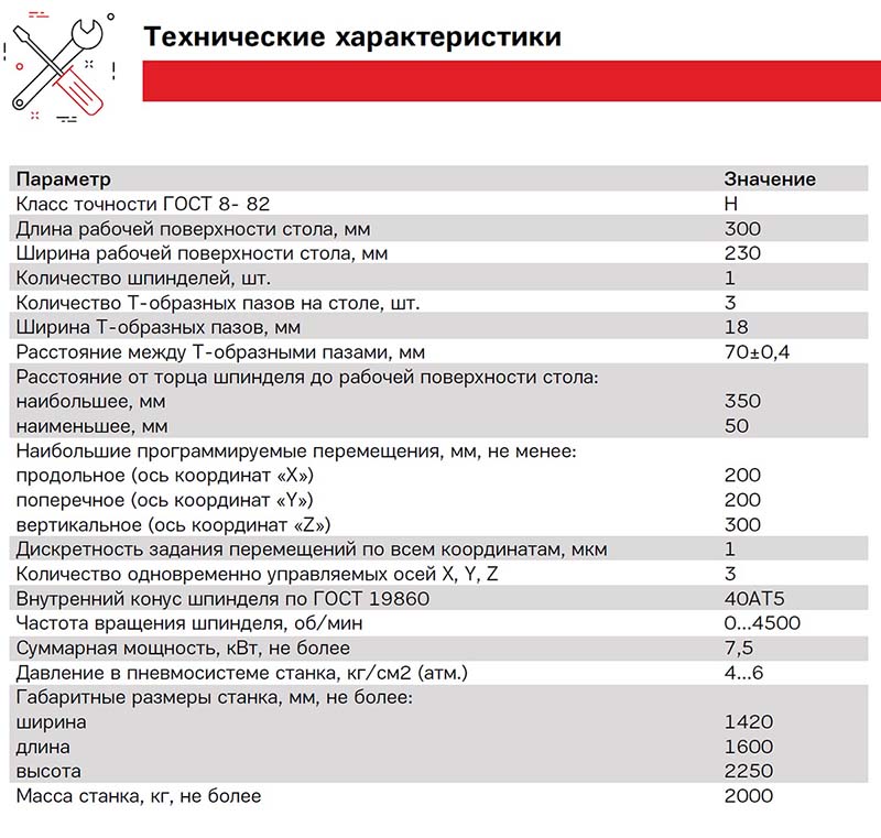 Технічні характеристики вертикального фрезерного верстата 1711ИФФ3