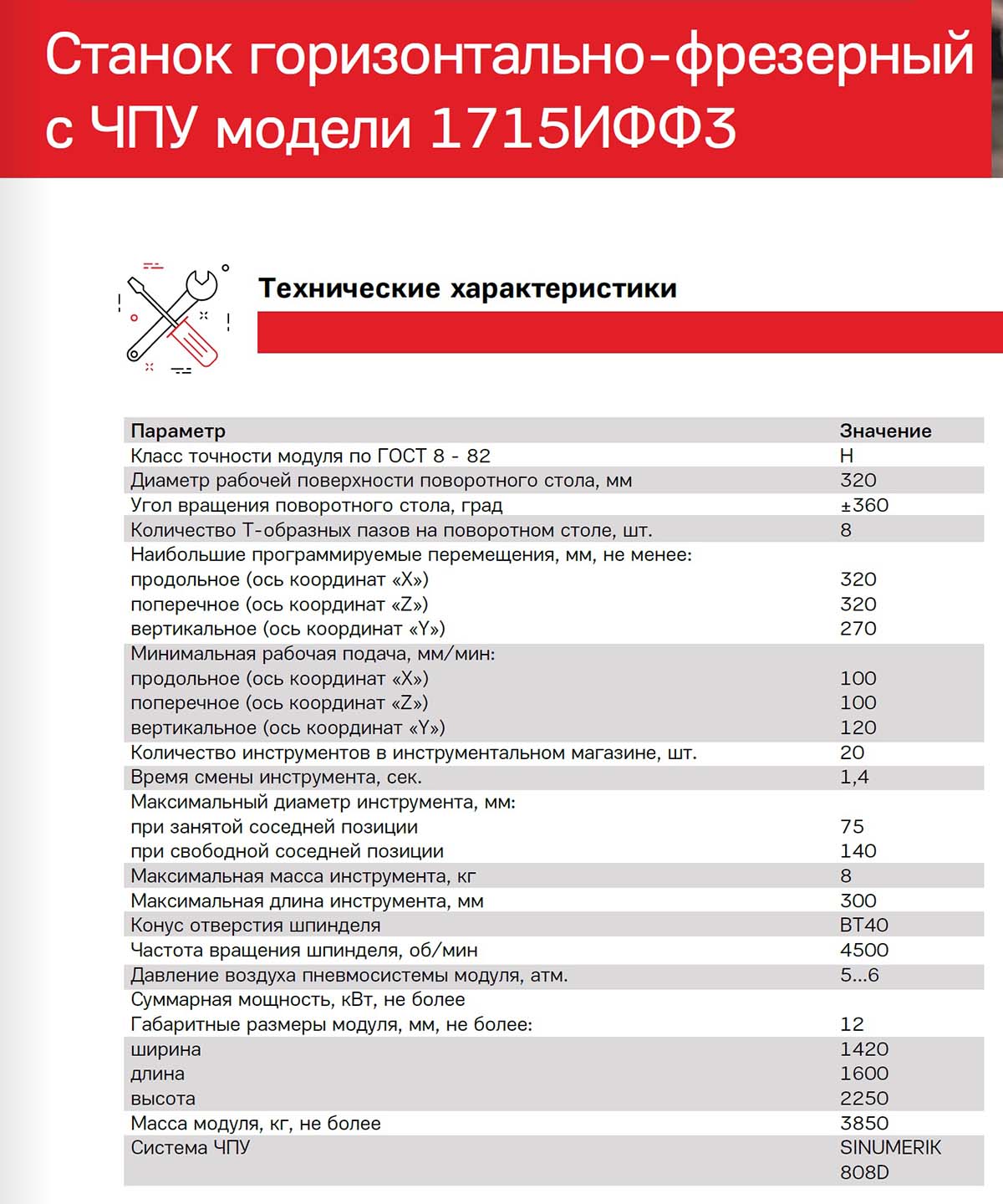 Технічні характеристики горизонтального фрезерного верстата 1715ИФФ3