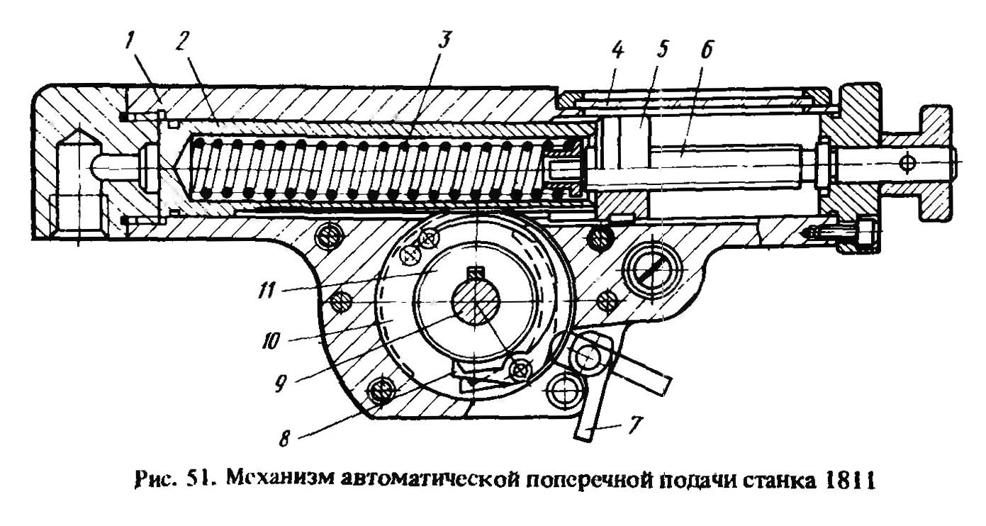Механізм автоматичною поперечної подачі затилочного верстата 1811. Дивитись у збільшеному масштабі