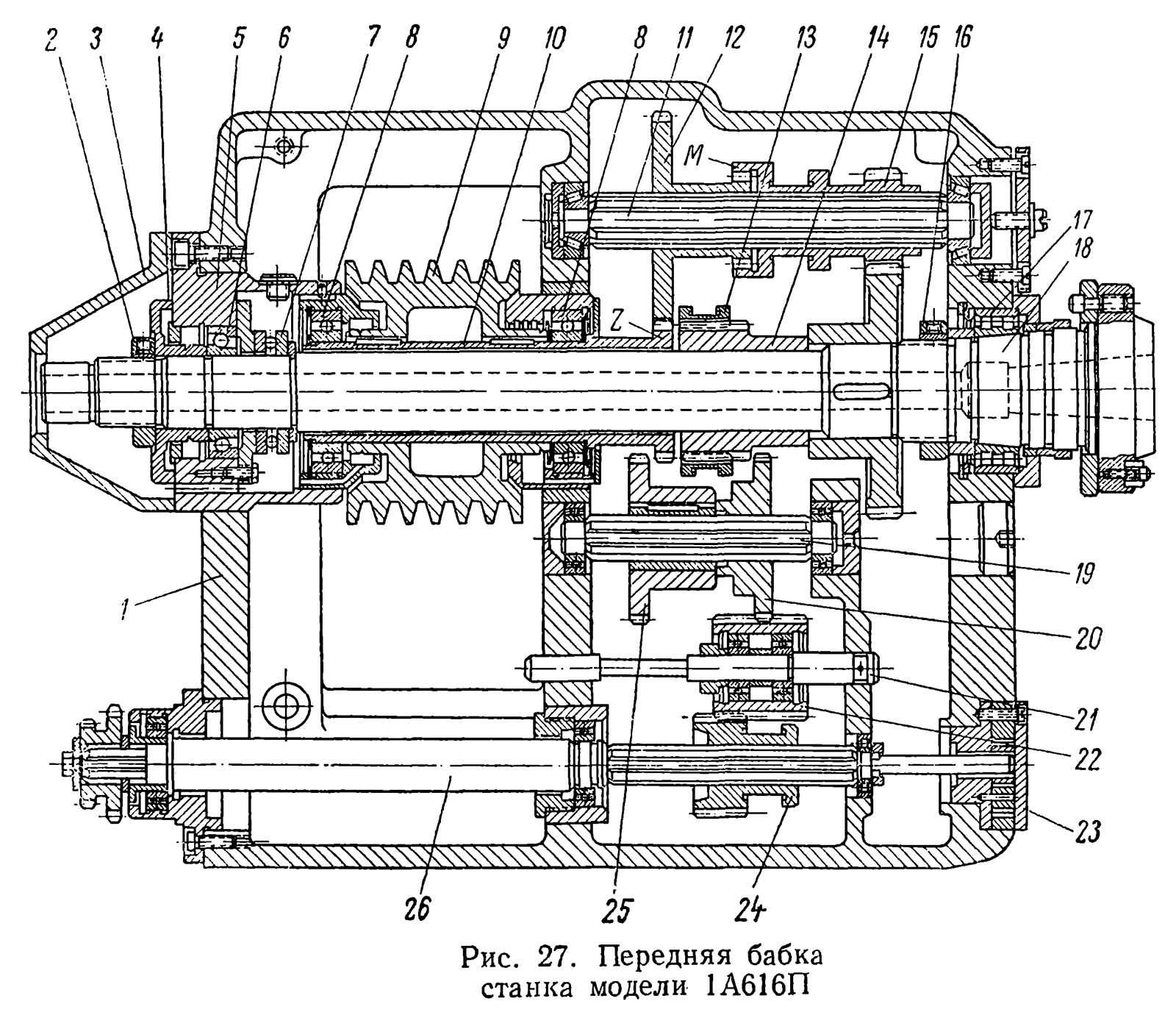 Передня бабка токарно-гвинторізного верстата 1А616П. Дивитись у збільшеному масштабі